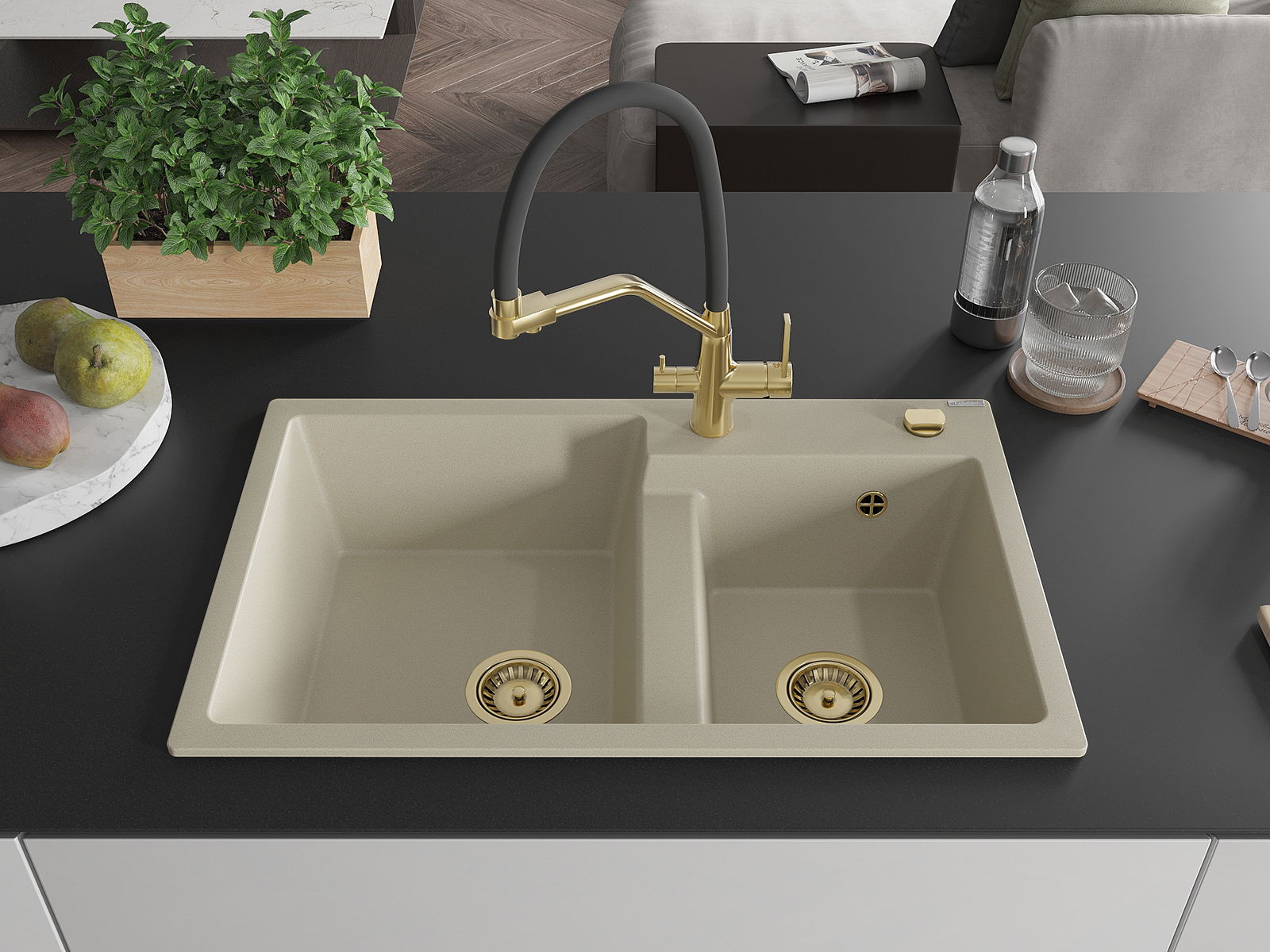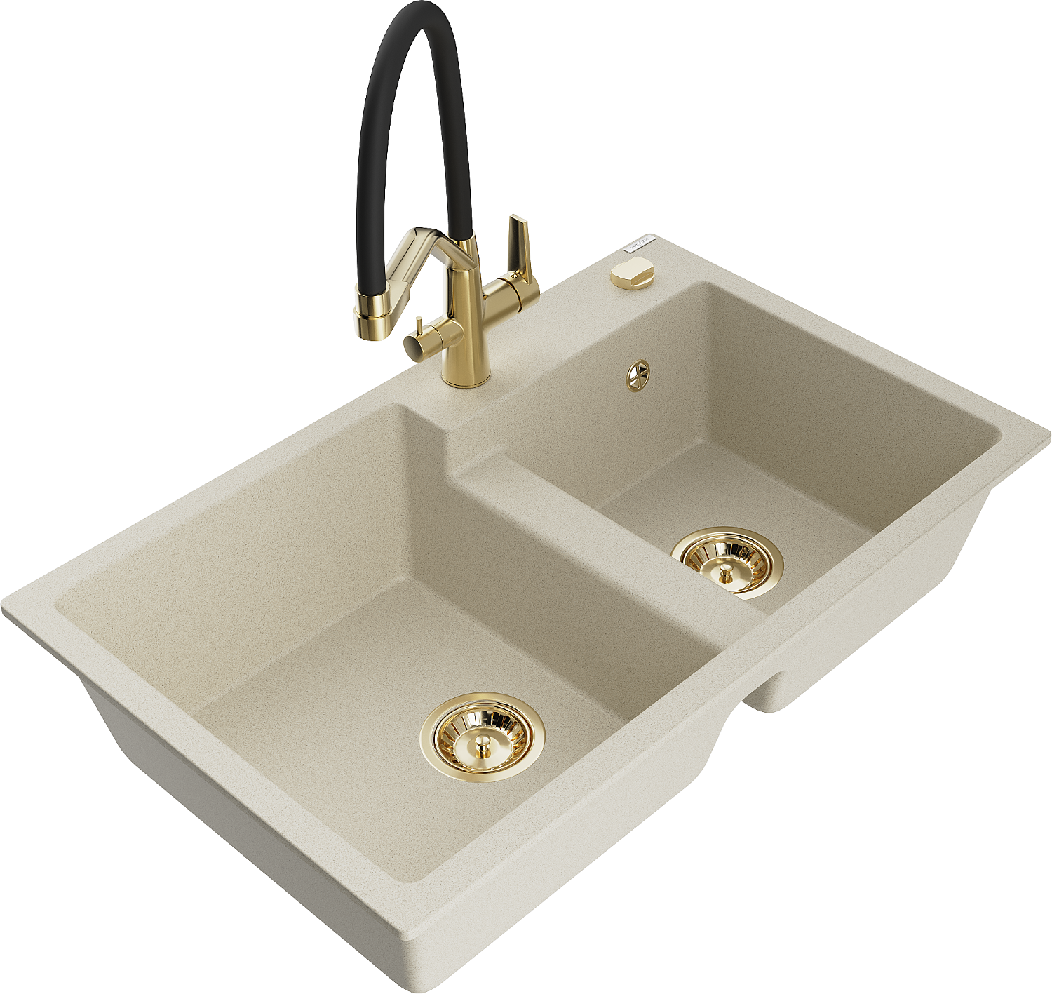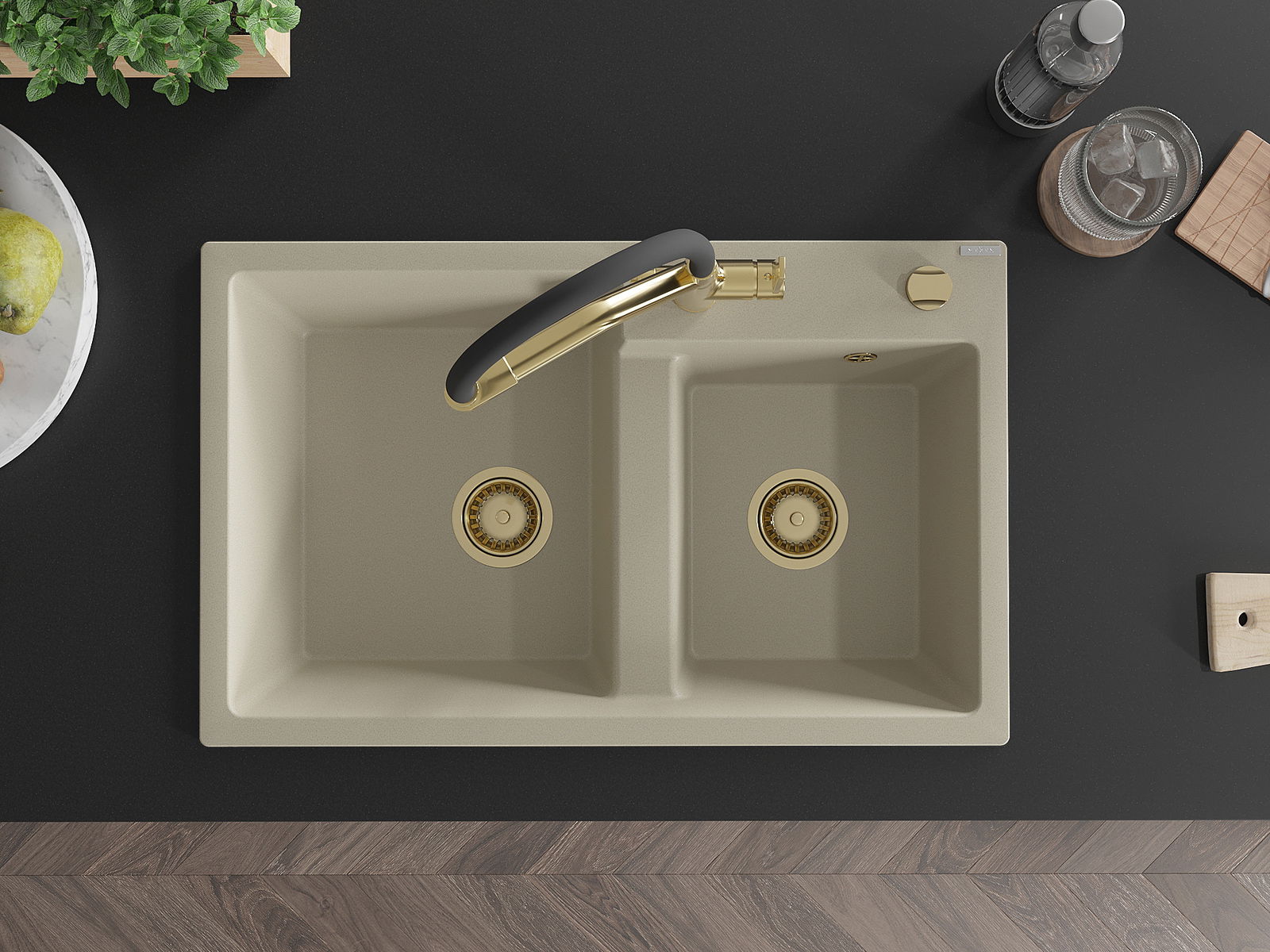 Mexen Tomas granitový drez 2-komorový s kuchynskou batériou Duo, béžový - 6516-69-671701-57-G