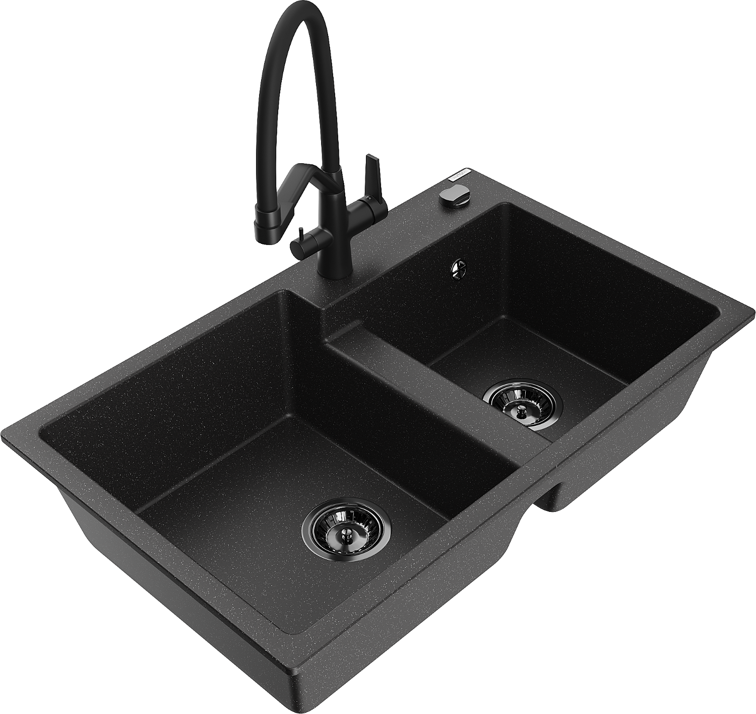 Mexen Tomas dvojkomorový granitový drez s kuchynskou batériou Duo, čierny/strieborný metalik - 6516-73-671701-70-B