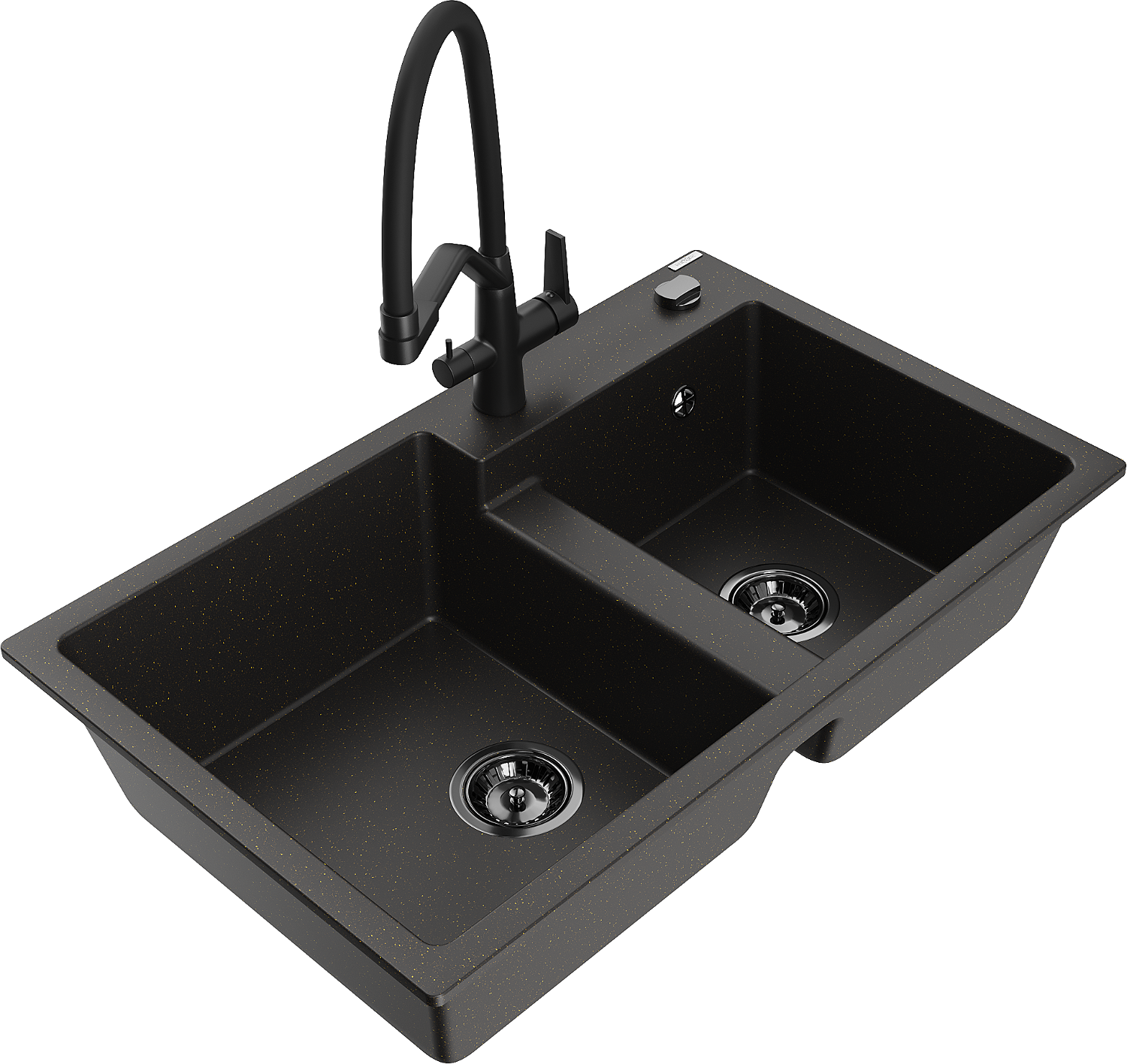 Mexen Tomas drez z kuchynskou batériou Duo, čierny/zlatý metalik - 6516-75-671701-70-B