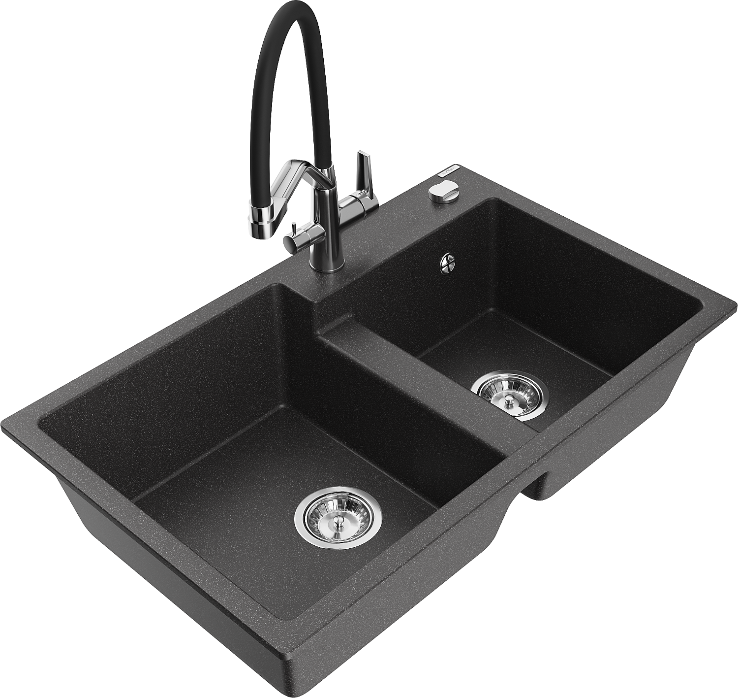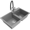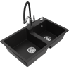 Mexen Tomas granitový drez s 2 komorami a kuchynskou batériou Duo, čierna s fľakmi - 6516-76-671701-07