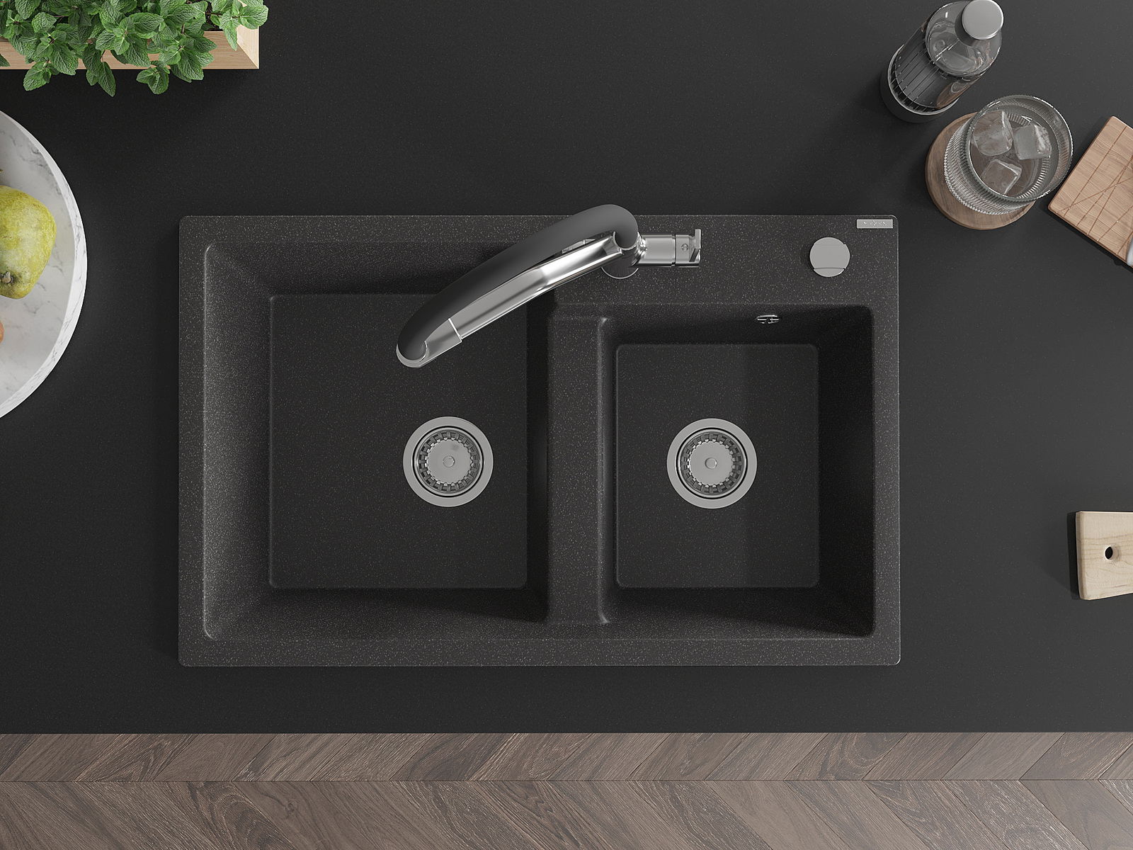 Drez má predfrézovaný otvor s priemerom 35 mm na samostatné prerazenie. Môže sa využiť napríklad na montáž dávkovača na tekutinu, ktorý eliminuje prítomnosť plastových fliaš v kuchyni a pridáva jej elegantné dokončenie.