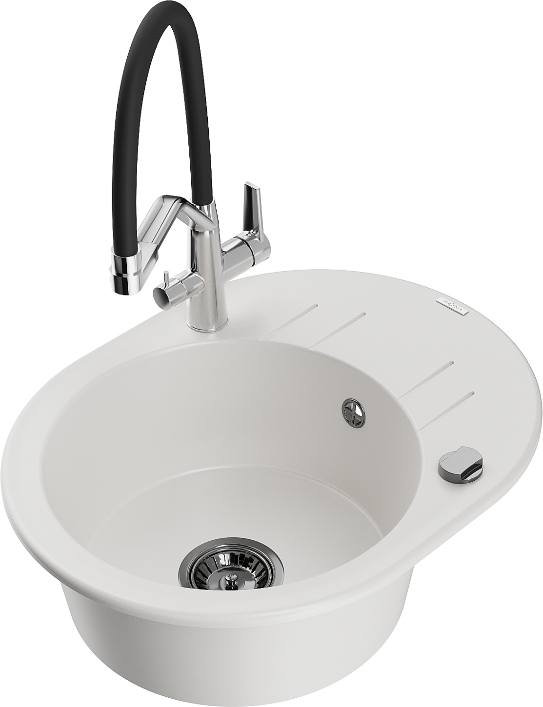 Mexen Kevin granitový kuchynský drez 1-komorový s kuchynskou batériou Duo, biely - 6517-20-671701-07-B