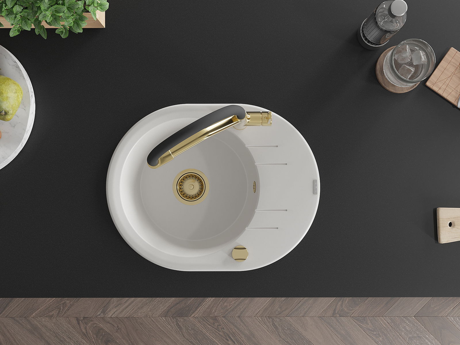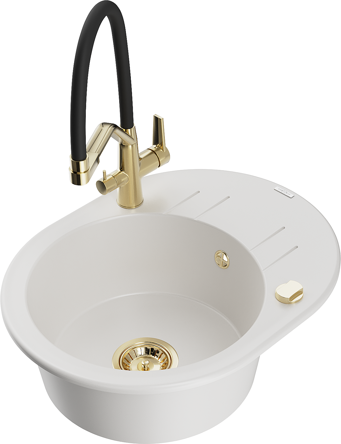 Mexen Kevin žulový umývadlo s 1-komorou a kuchynskou batériou Duo, biely - 6517-20-671701-57-G
