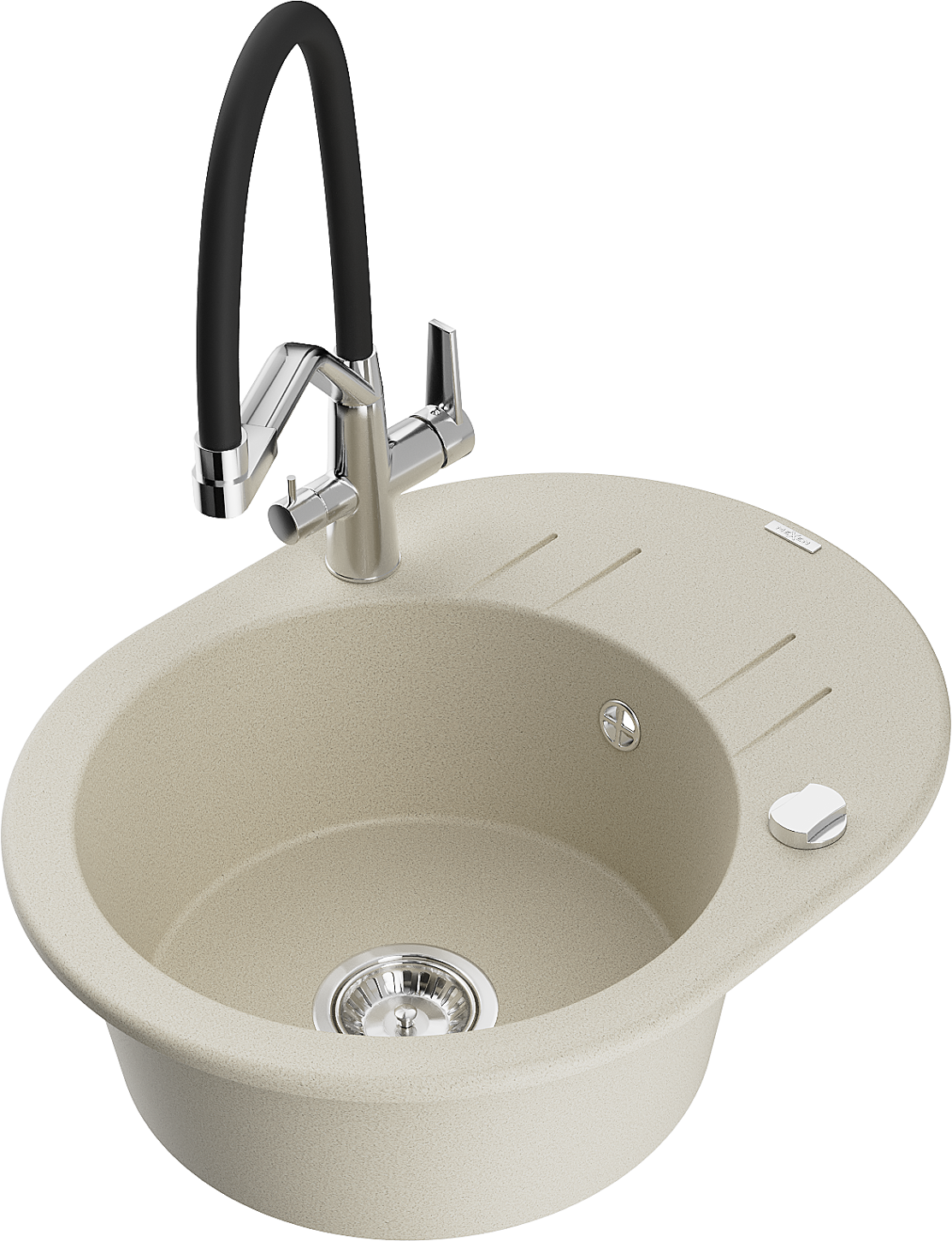 Mexen Kevin granitový kuchynský drez 1-komorový s kuchynskou batériou Duo, béžový - 6517-69-671701-07
