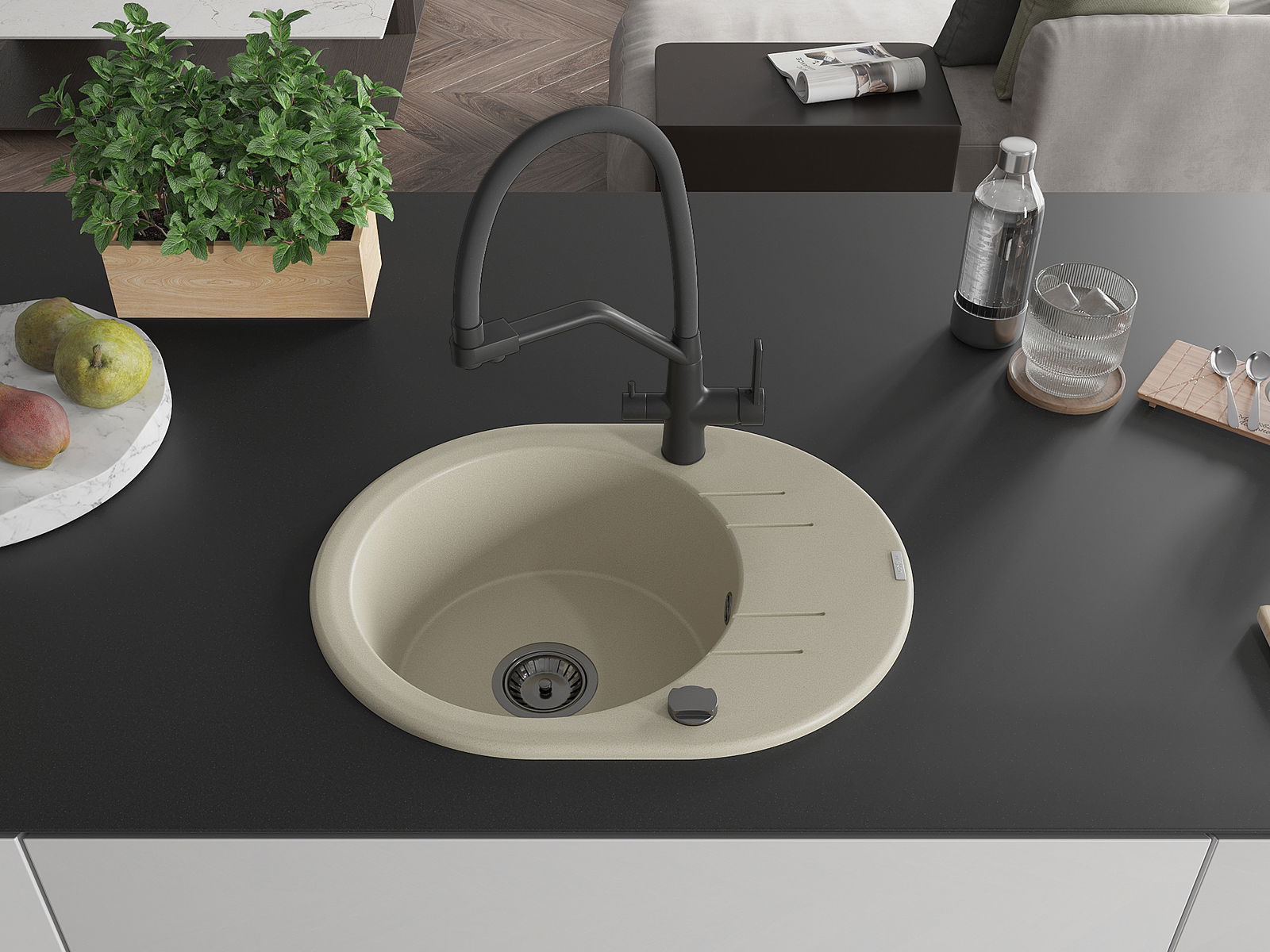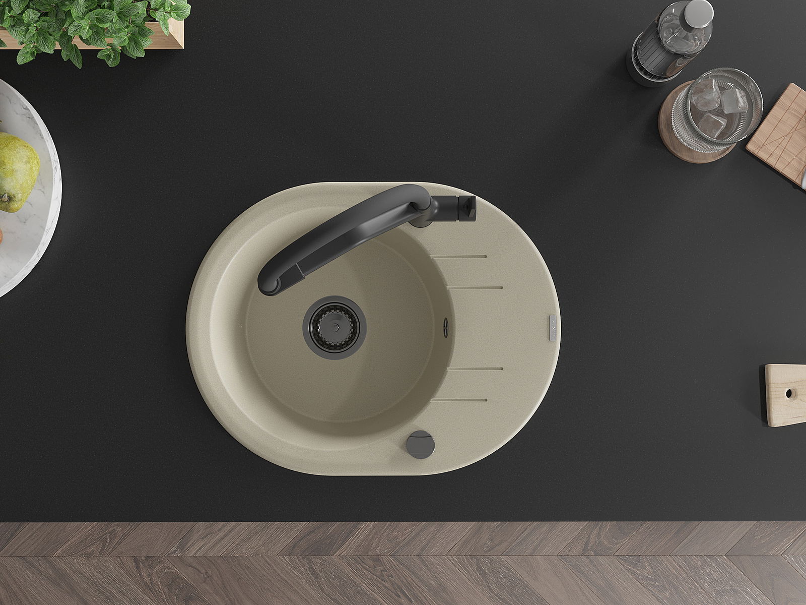Povrch umývadla je odolný voči škvrnám a sfarbeniu, vďaka čomu sa ľahko čistí a zachováva si svoju farbu po dlhú dobu. Estetický a prakticky dopĺňajúci každú kuchyňu.