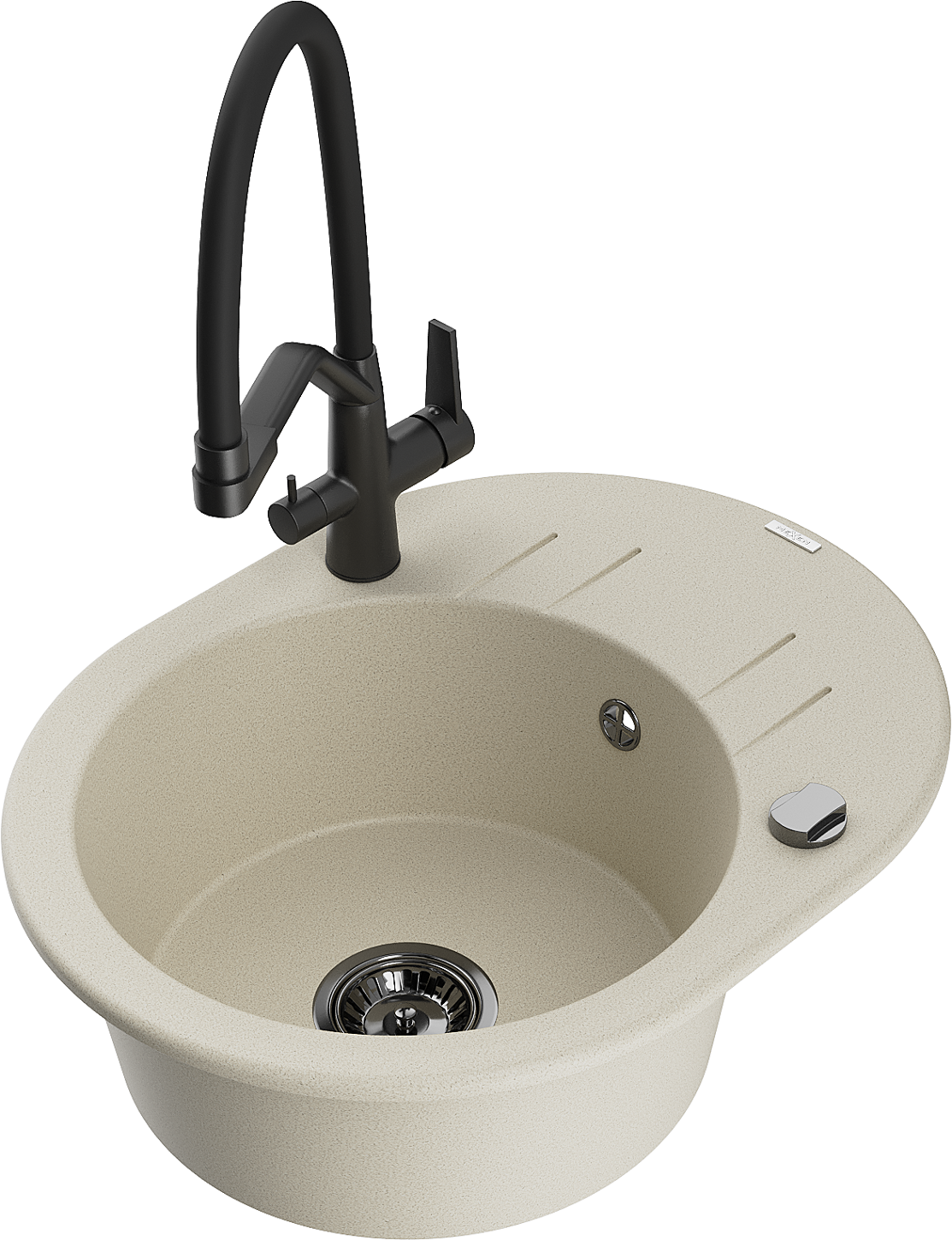 Mexen Kevin žulový drez 1-komorový s kuchynskou batériou Duo, béžový - 6517-69-671701-70-B