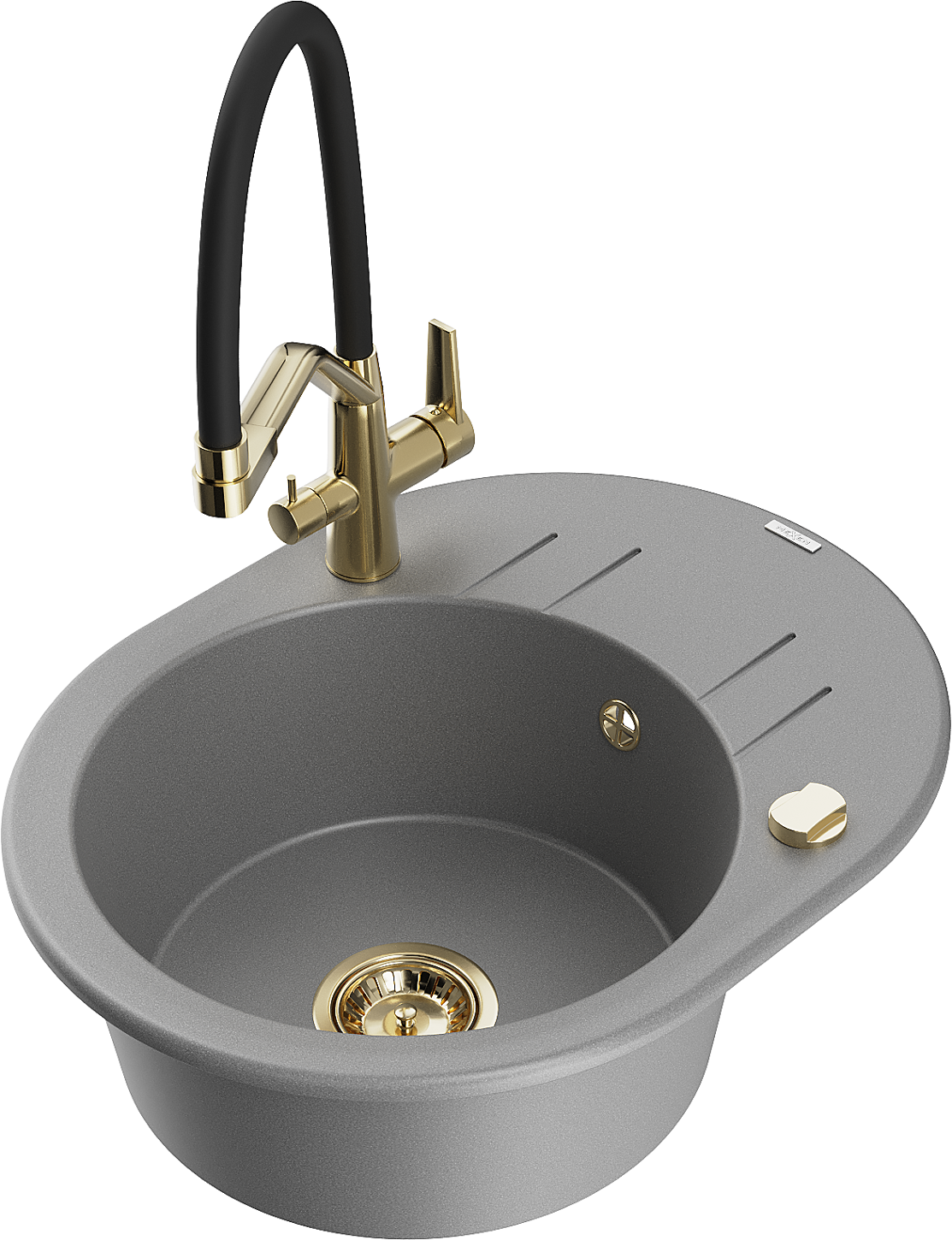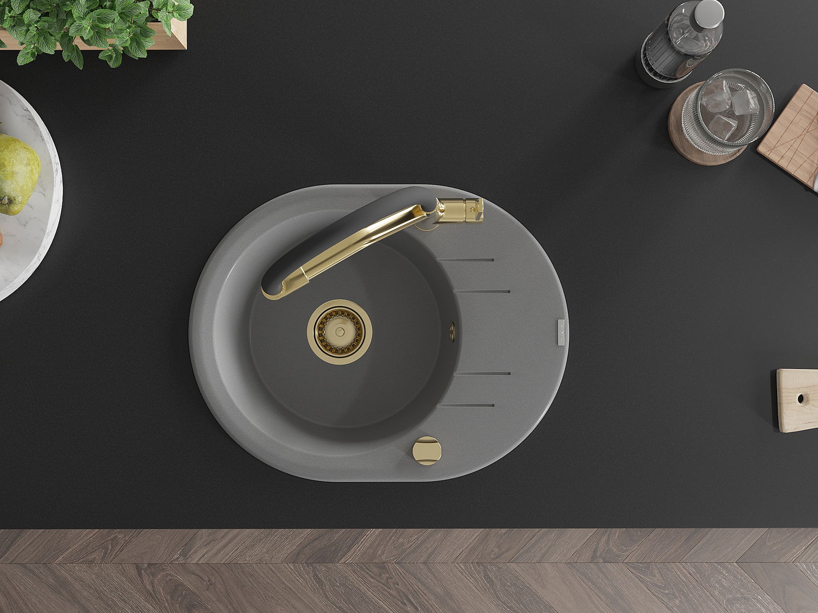 Mexen Kevin žulový kuchynský drez s 1 komorou a kuchynskou batériou Duo, sivý - 6517-71-671701-57-G