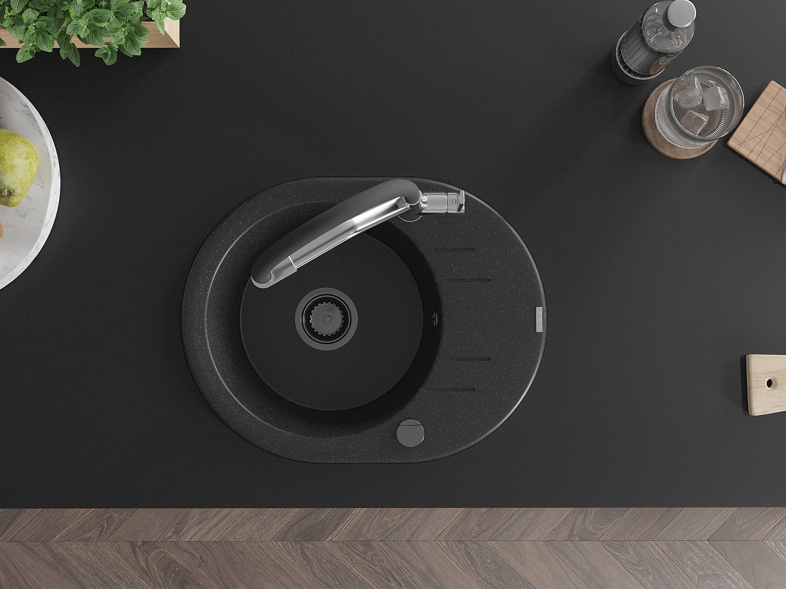 Povrch umývadla je odolný voči škvrnám a sfarbeniu, vďaka čomu sa ľahko čistí a zachováva si svoju farbu po dlhú dobu. Estetický a prakticky dopĺňajúci každú kuchyňu.