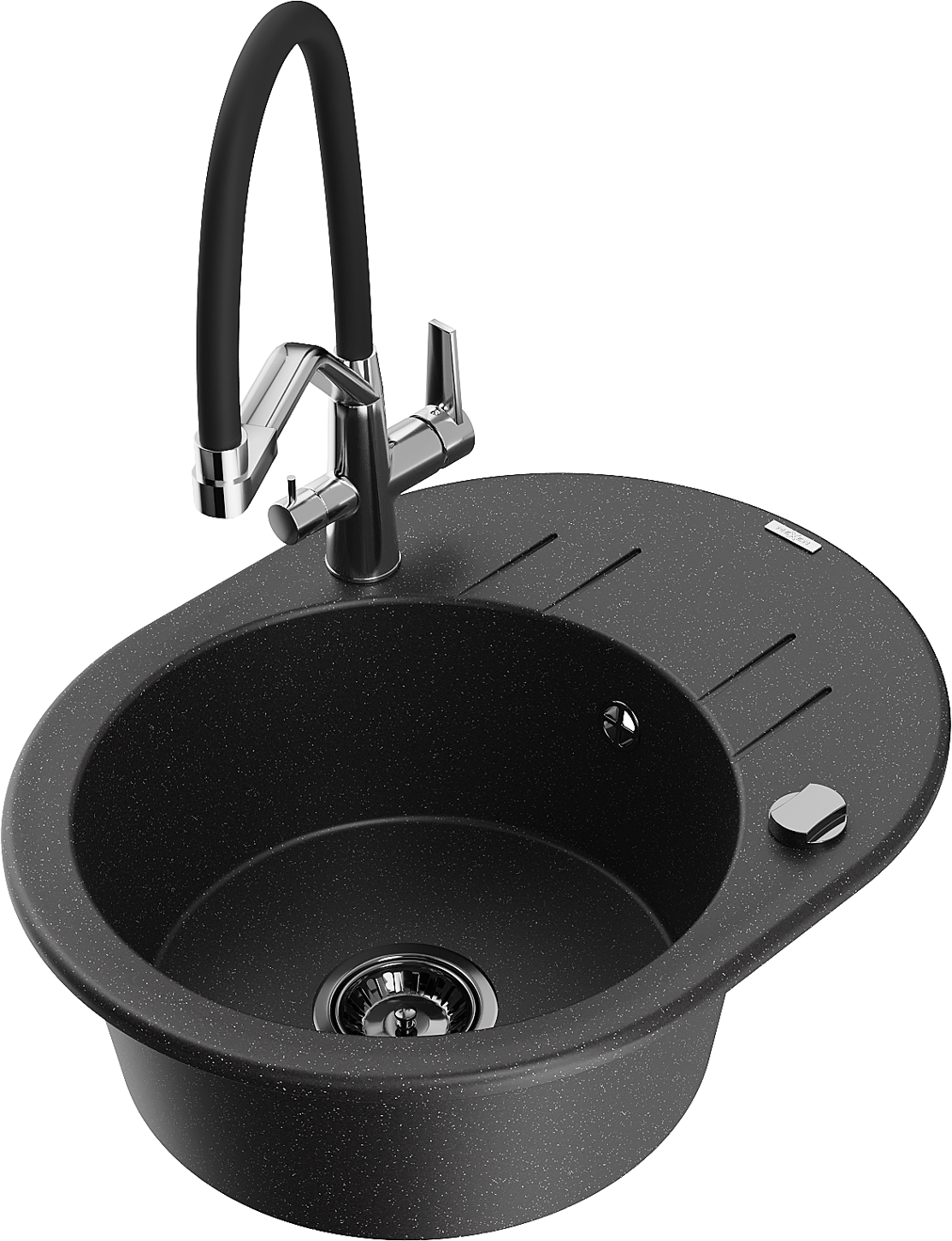 Mexen Kevin granitový drez 1-komorový s kuchynskou batériou Duo, čierny/strieborný metalík - 6517-73-671701-07-B