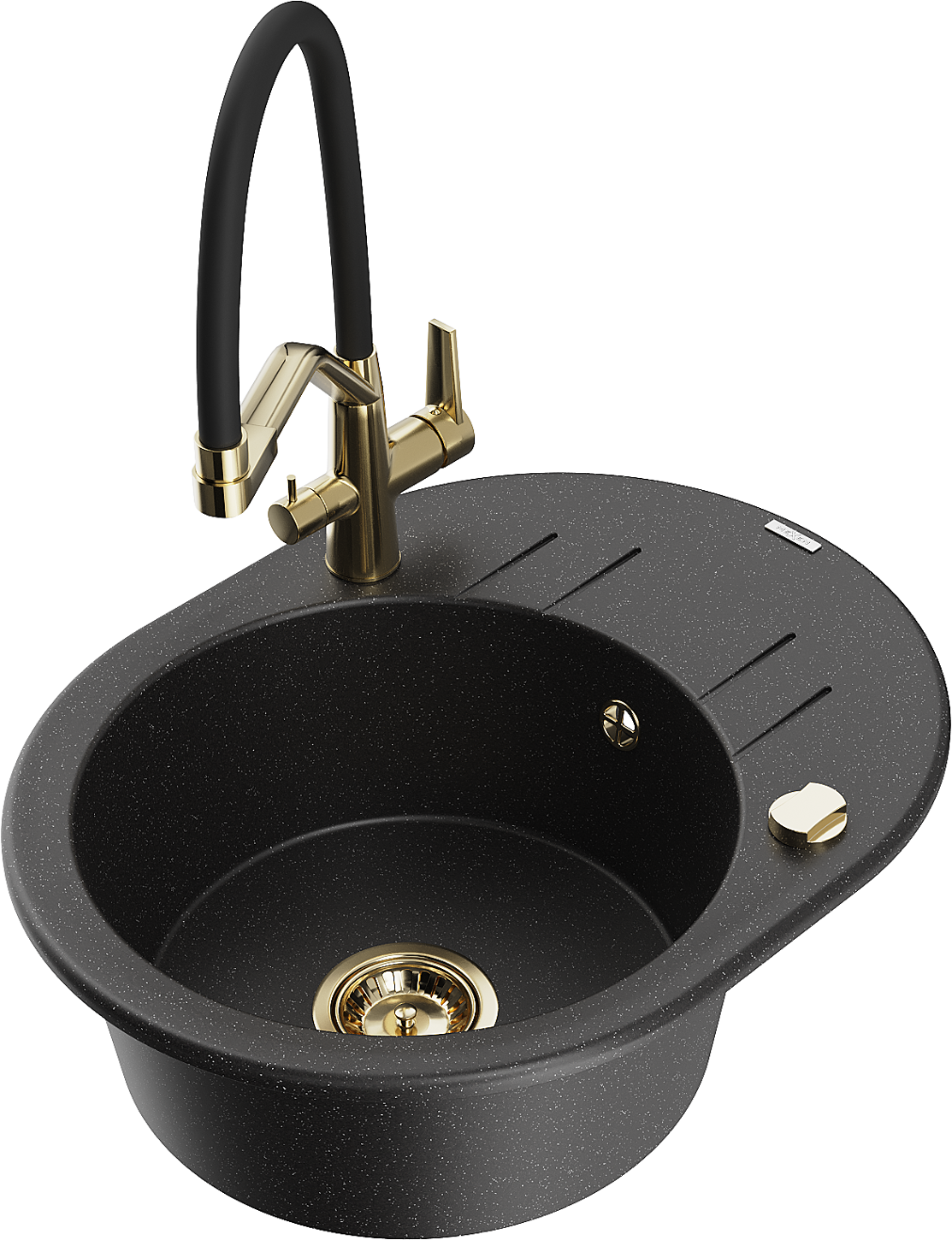 Mexen Kevin jednokomorový granitový kuchynský drez s kuchynskou batériou Duo, čierny/strieborný metalik - 6517-73-671701-57-G