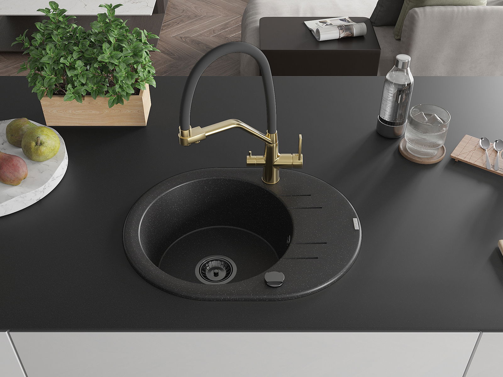 Povrch umývadla je odolný voči škvrnám a sfarbeniu, vďaka čomu sa ľahko čistí a zachováva si svoju farbu po dlhú dobu. Estetický a prakticky dopĺňajúci každú kuchyňu.
