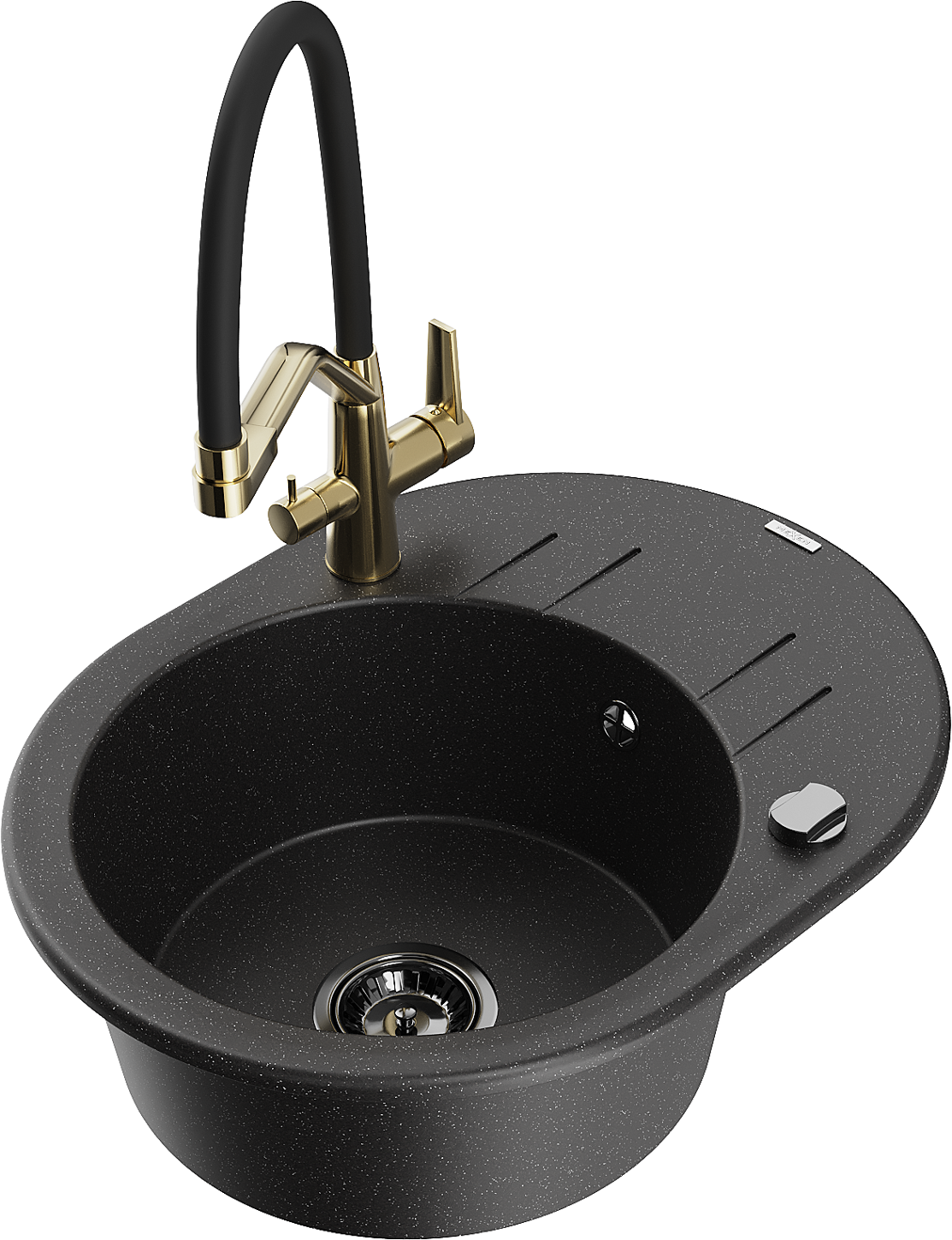 Mexen Kevin žulový drez 1-komorový s kuchynskou batériou Duo, čierny/strieborný metalík - 6517-73-671701-57-B