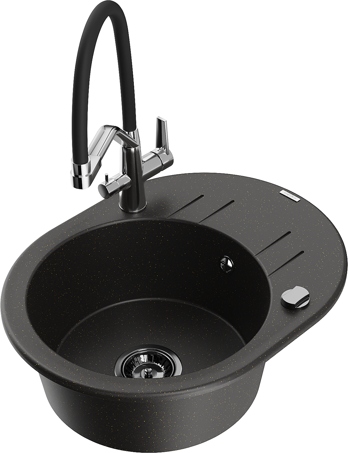 Mexen Kevin jednokomorový žulový drez s kuchynskou batériou Duo, čierny/zlatý metalik - 6517-75-671701-07-B
