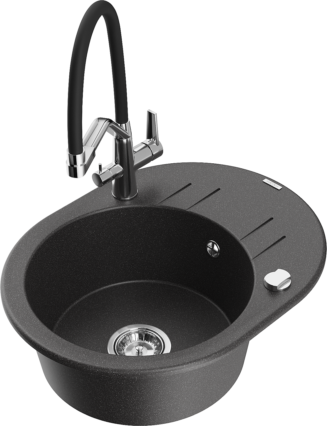 Mexen Kevin granitový drez 1-komorový s kuchynskou batériou Duo, čierny bodkovaný - 6517-76-671701-07