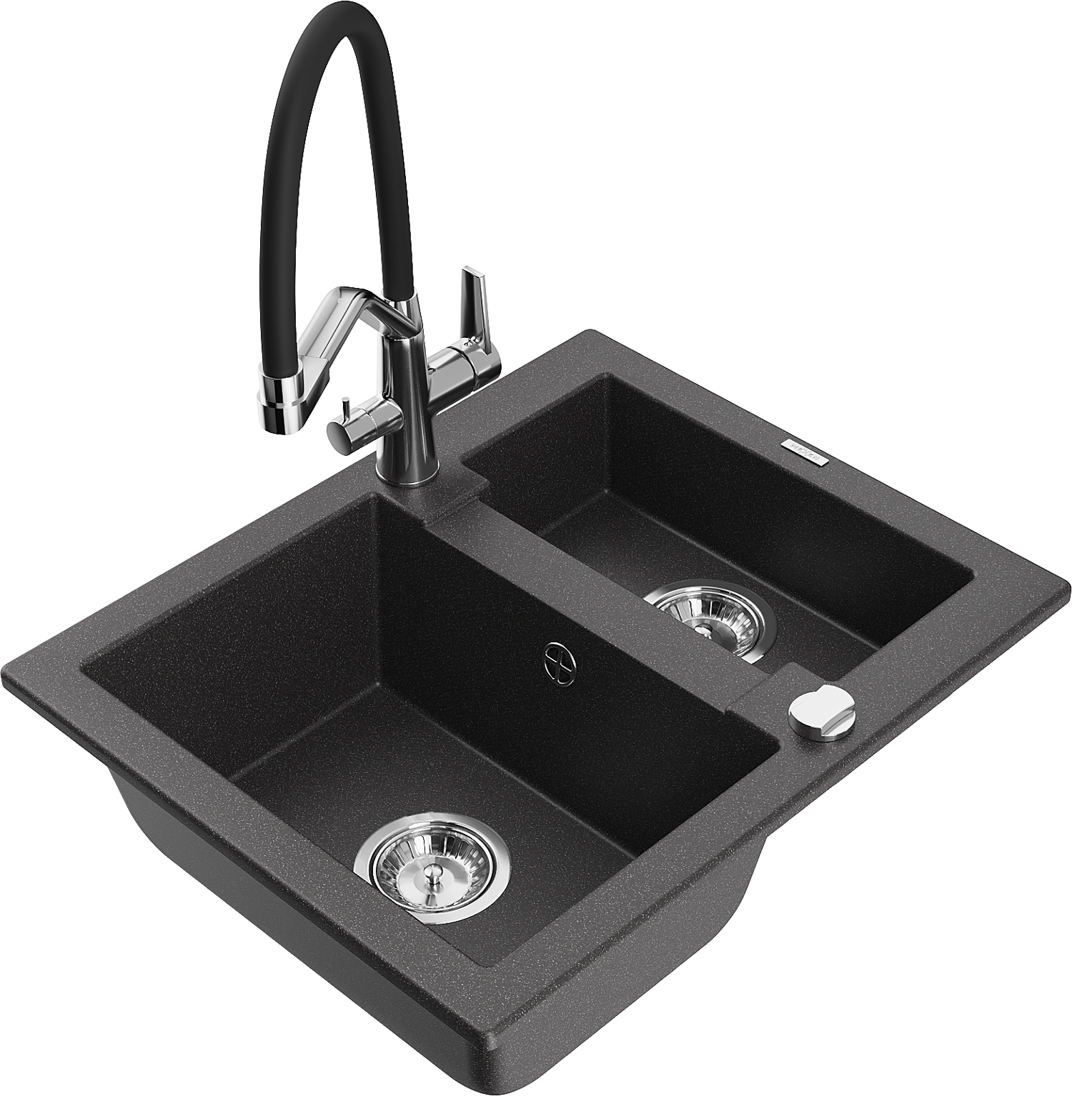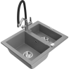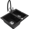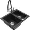 Mexen Carlos žulový drez s 1,5 komorou s kuchynskou batériou Duo, čierny škvrnitý - 6518-76-671701-07