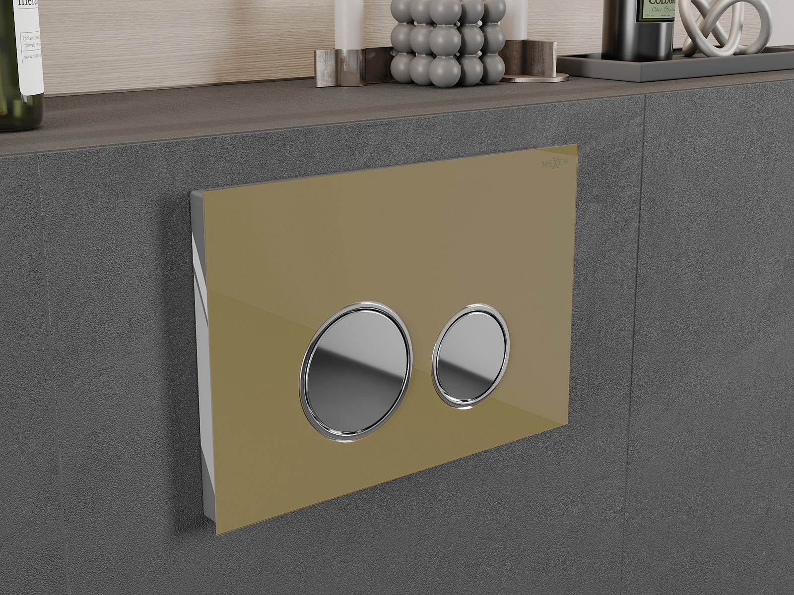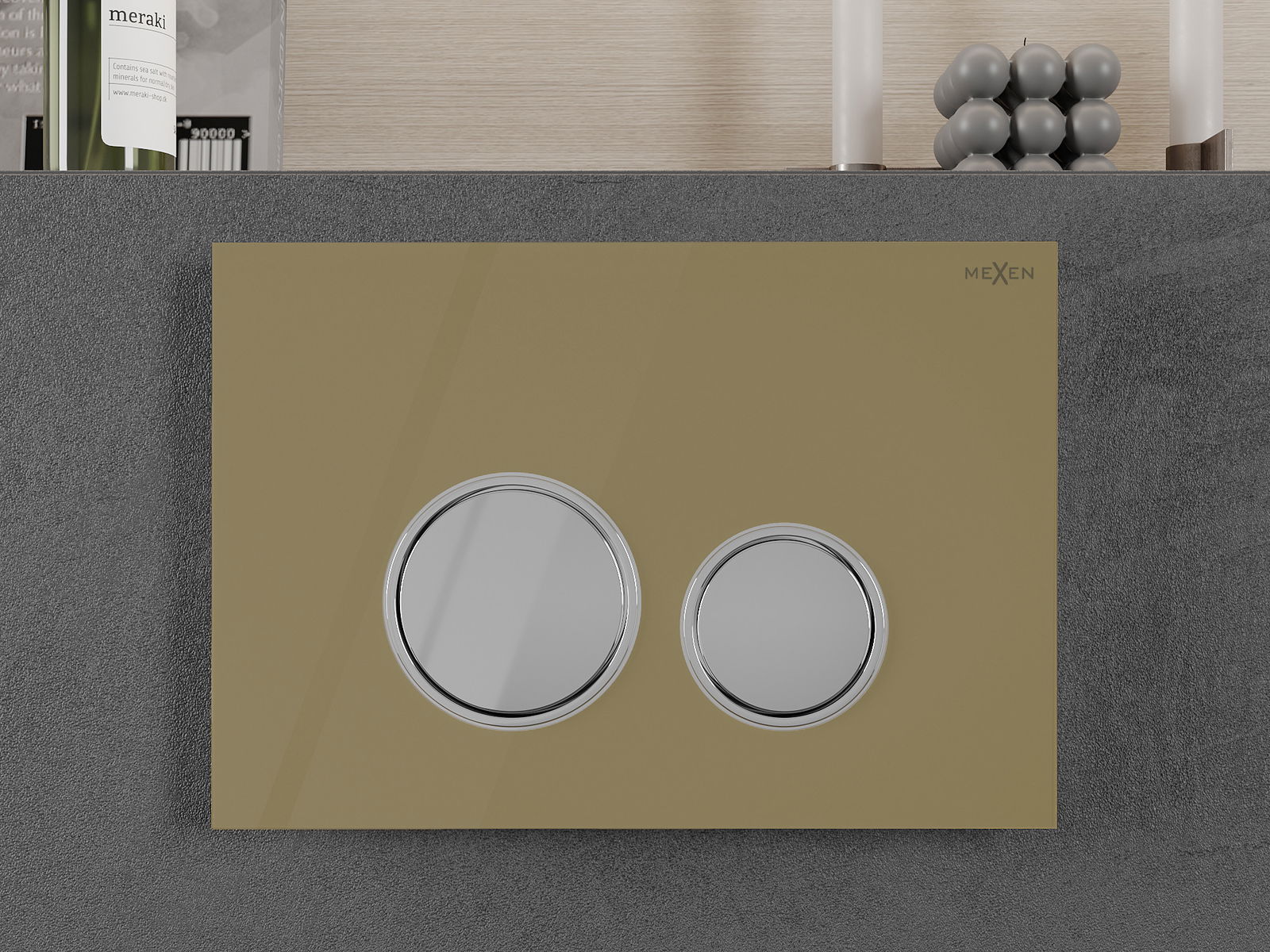 Tlačidlo sa zmestí na rám z Mexen Fenix Slim Series, v ktorej je možné nainštalovať spredu. Populárne a praktické riešenie, najmä v kúpeľniach, kde je prístup k gombíku spredu pohodlnejší.