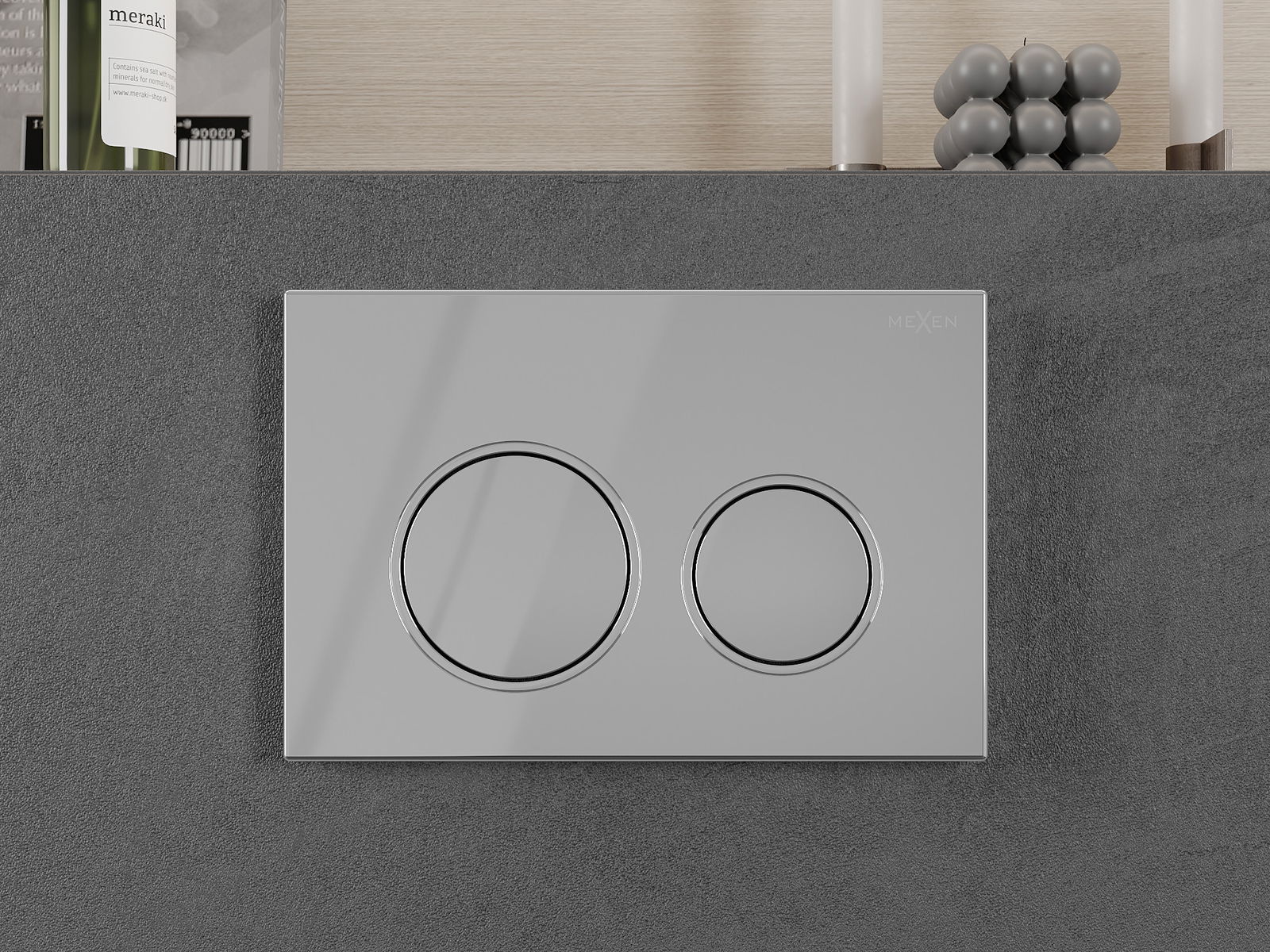 Vyplachovacie tlačidlo sa zmestí na snímky zo série Mexen Fenix XS, ktorá umožňuje nainštalovanie spredu aj z hornej časti rámu. Vďaka tomu je porovnávanie preferovanej montážnej metódy k vašim potrebám ešte jednoduchšie.