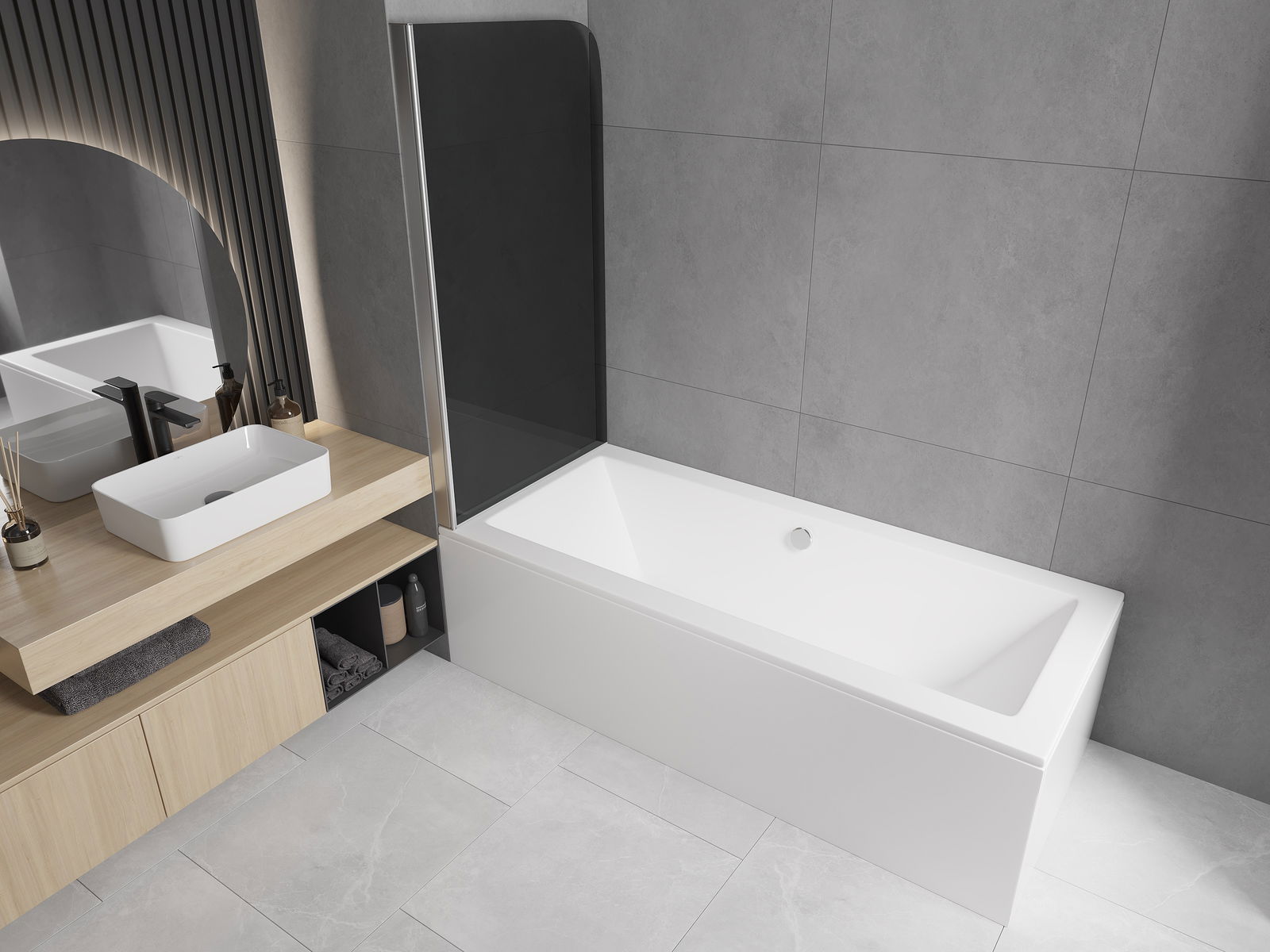Obrazovka má jedno pohybujúce sa krídlo s možnosťou skladania. Toto riešenie šetrí viac priestoru v kúpeľni a umožňuje vám voľne využívať zvyšný priestor, keď nepoužívame kúpaciu oblasť.