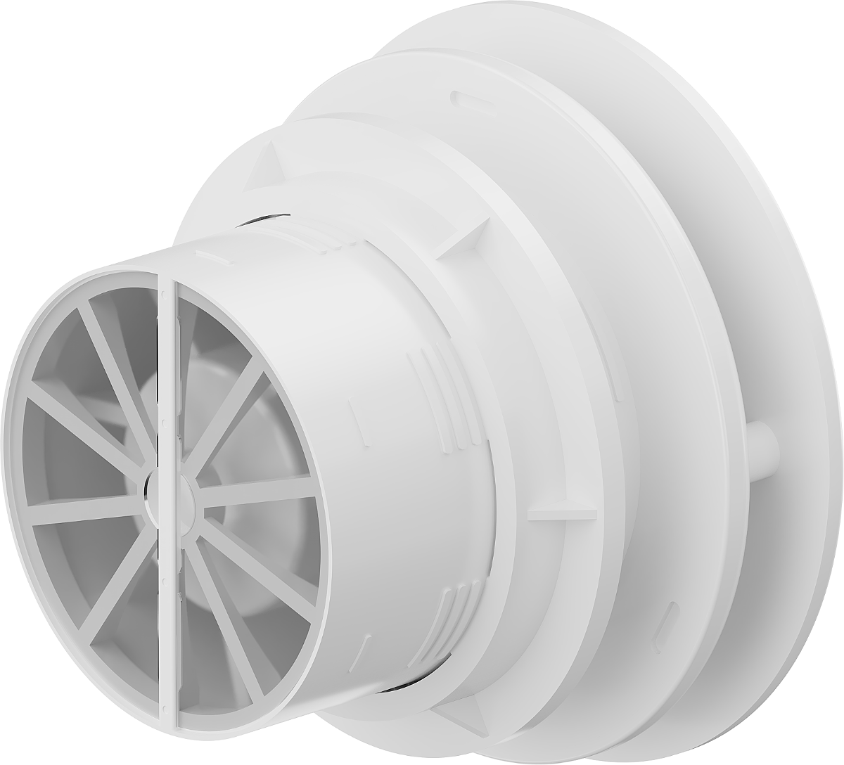 Zariadenie je vybavené mechanizmom, ktorý zabraňuje návratu vzduchu späť do miestnosti po vypnutí ventilátora. Obzvlášť užitočné v kúpeľniach, kde zabránenie nechcenému prúdeniu vzduchu môže zlepšiť komfort a hygienu.