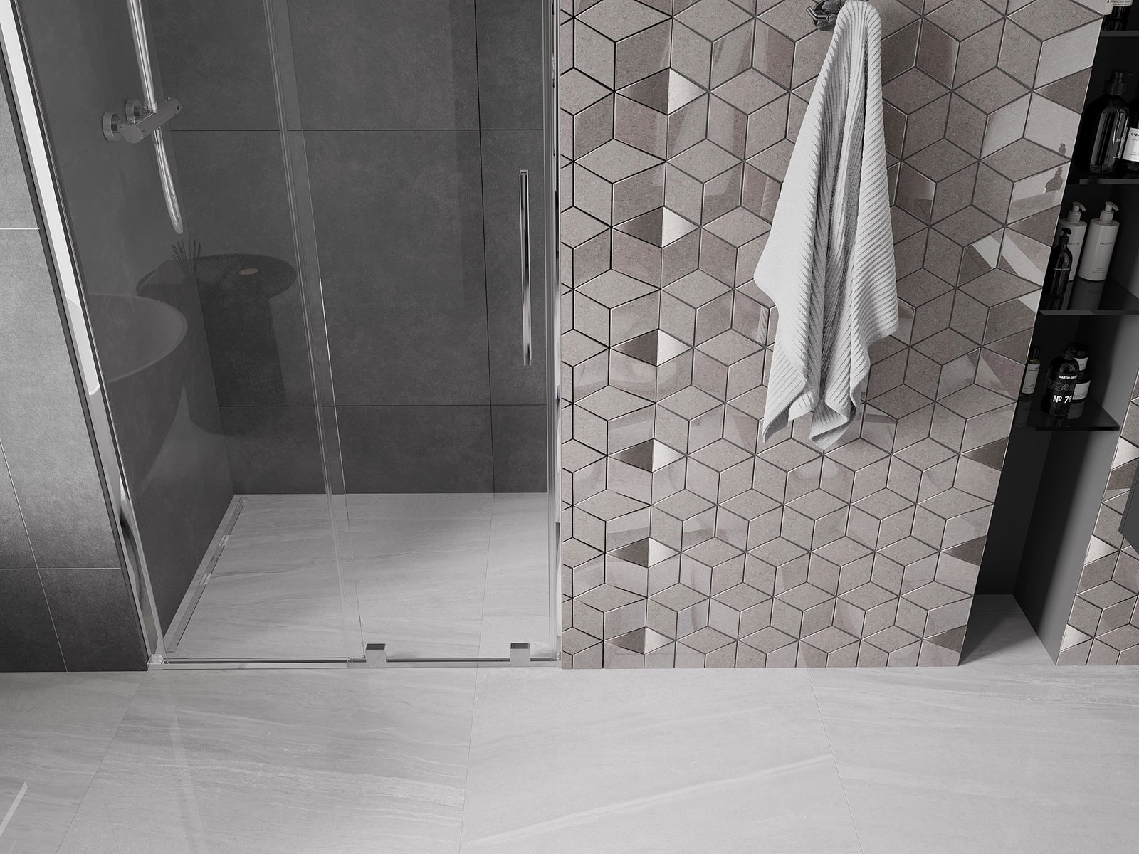 Praktický a pohodlný držiak je vyrobený z nehrdzavejúcej ocele. Módny tvar v kombinácii s povrchovou úpravou prispôsobenou farbe profilov dodáva celej konštrukcii moderný a štýlový vzhľad, podčiarkujúc estetiku každej kúpeľne.