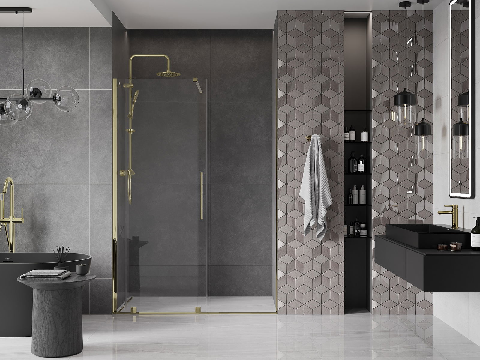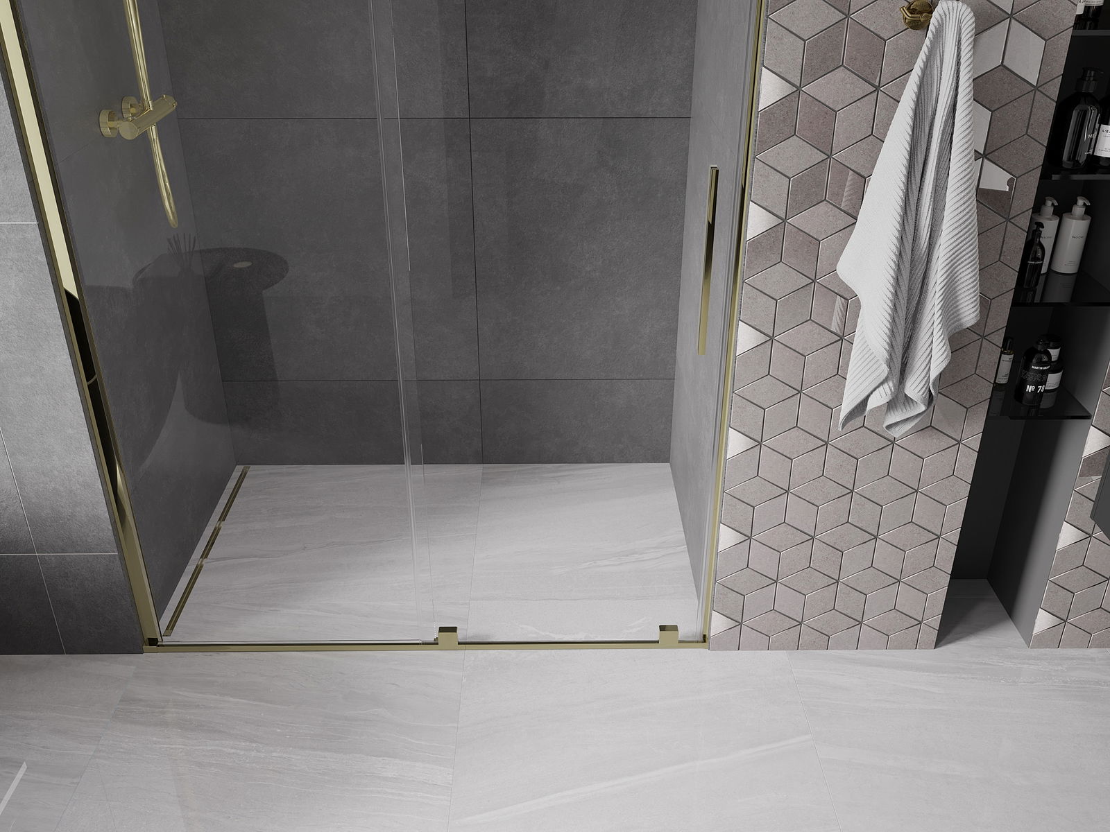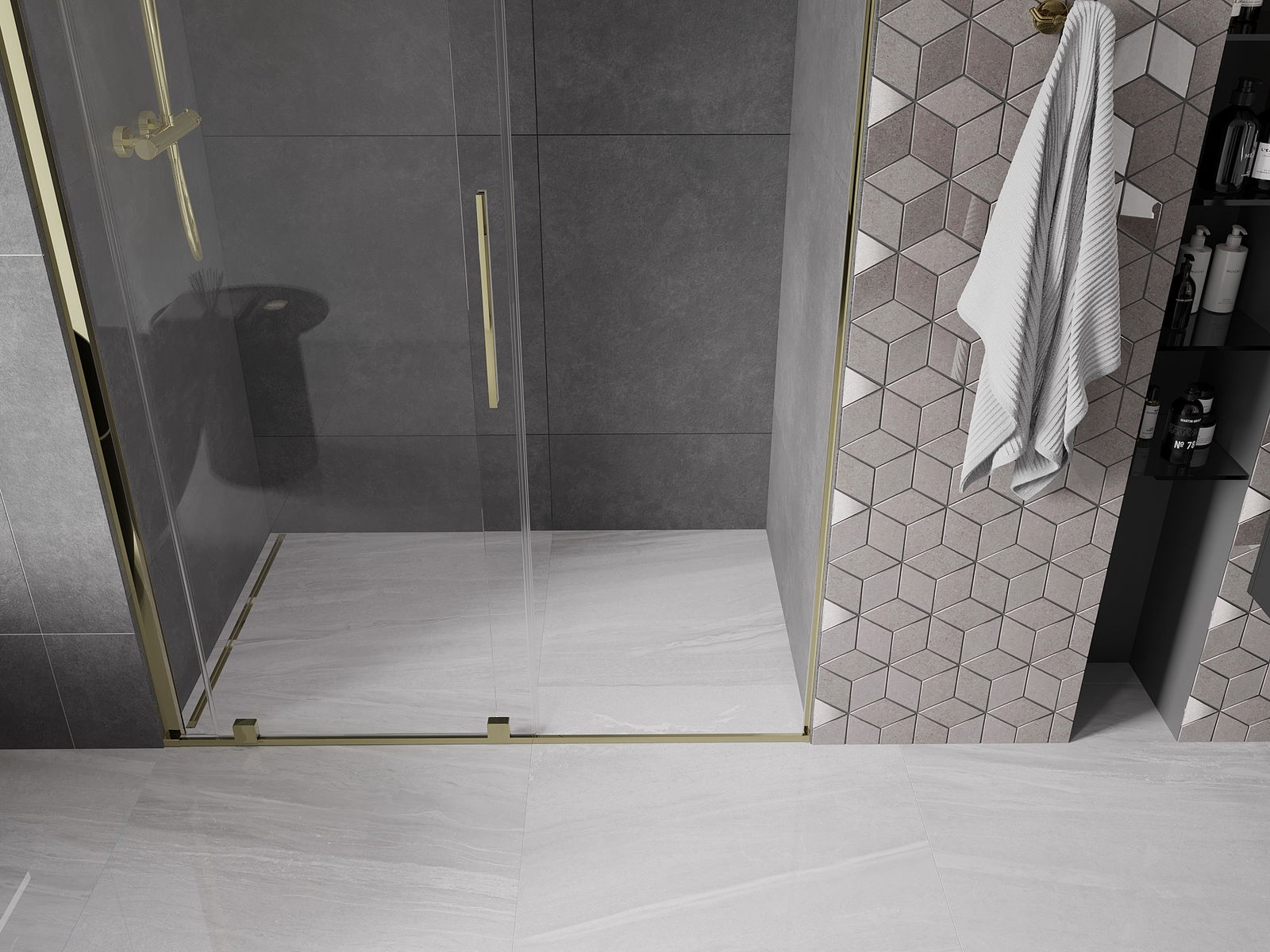 Praktický a pohodlný držiak je vyrobený z nehrdzavejúcej ocele. Módny tvar v kombinácii s povrchovou úpravou prispôsobenou farbe profilov dodáva celej konštrukcii moderný a štýlový vzhľad, podčiarkujúc estetiku každej kúpeľne.