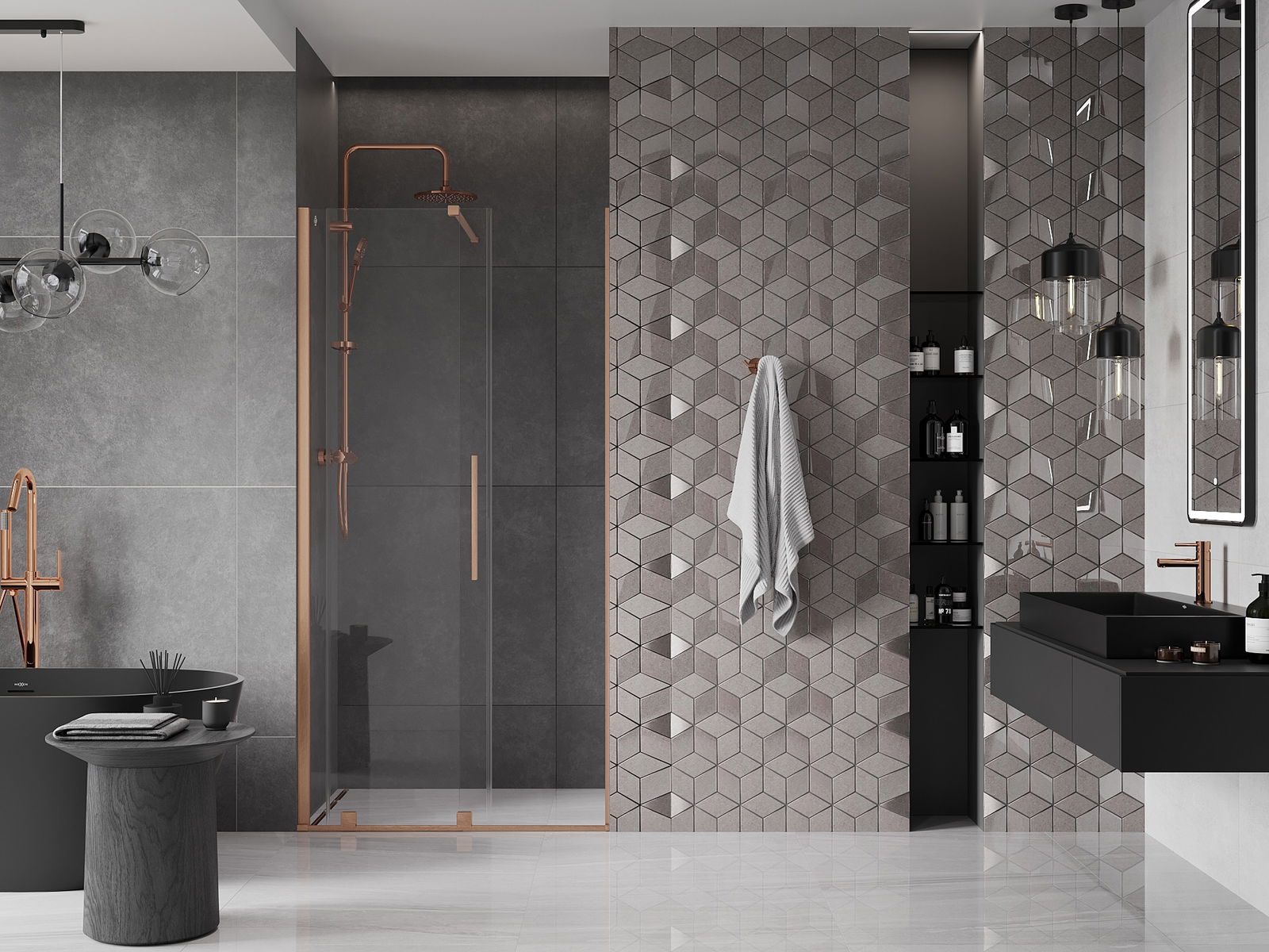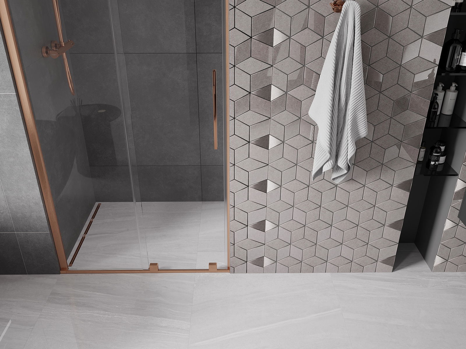 Mexen Velar posuvné sprchové dvere 120 cm, transparentné, brúsená meď - 871-120-000-01-65