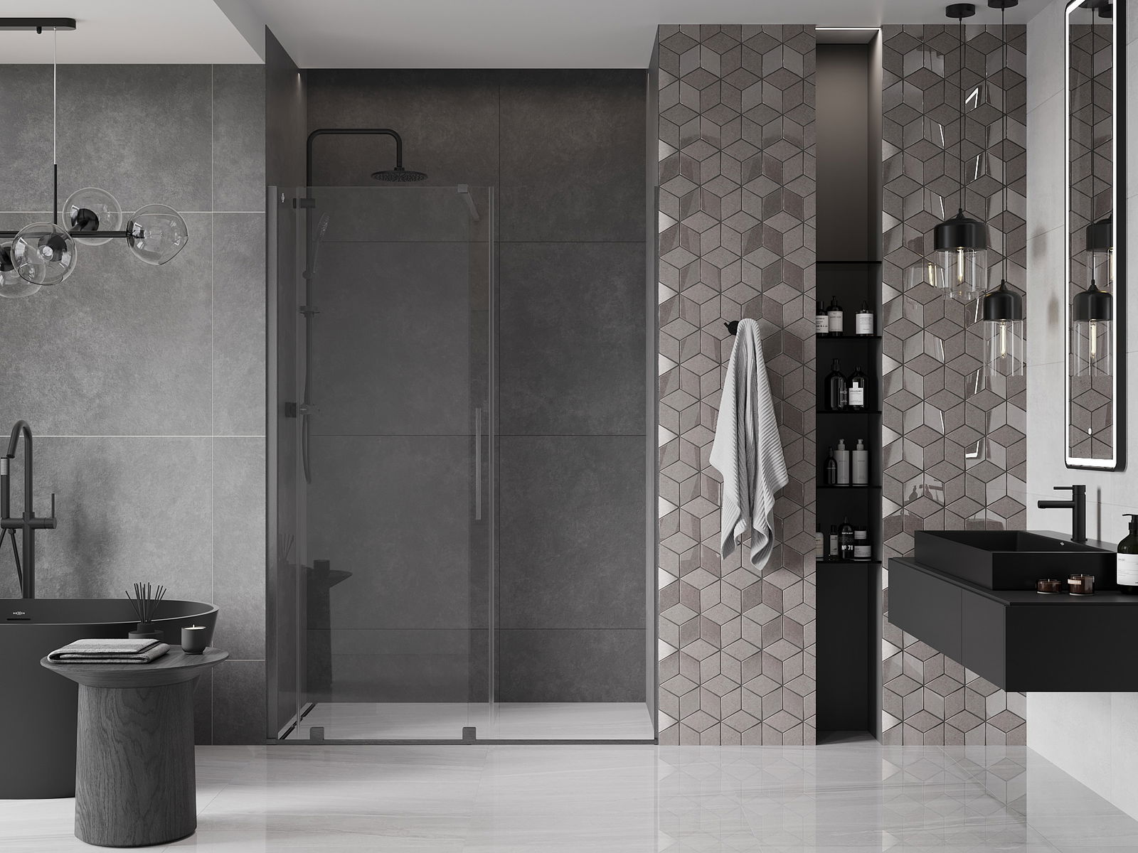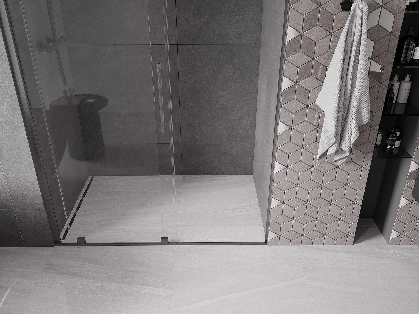 Praktická a pohodlná rukoväť je vyrobená z nehrdzavejúcej ocele. Módny tvar v kombinácii s povrchovou úpravou, ktorá ladí s farbou profilov, dodáva celku moderný a štýlový vzhľad, čím zvyšuje estetiku každej kúpeľne.