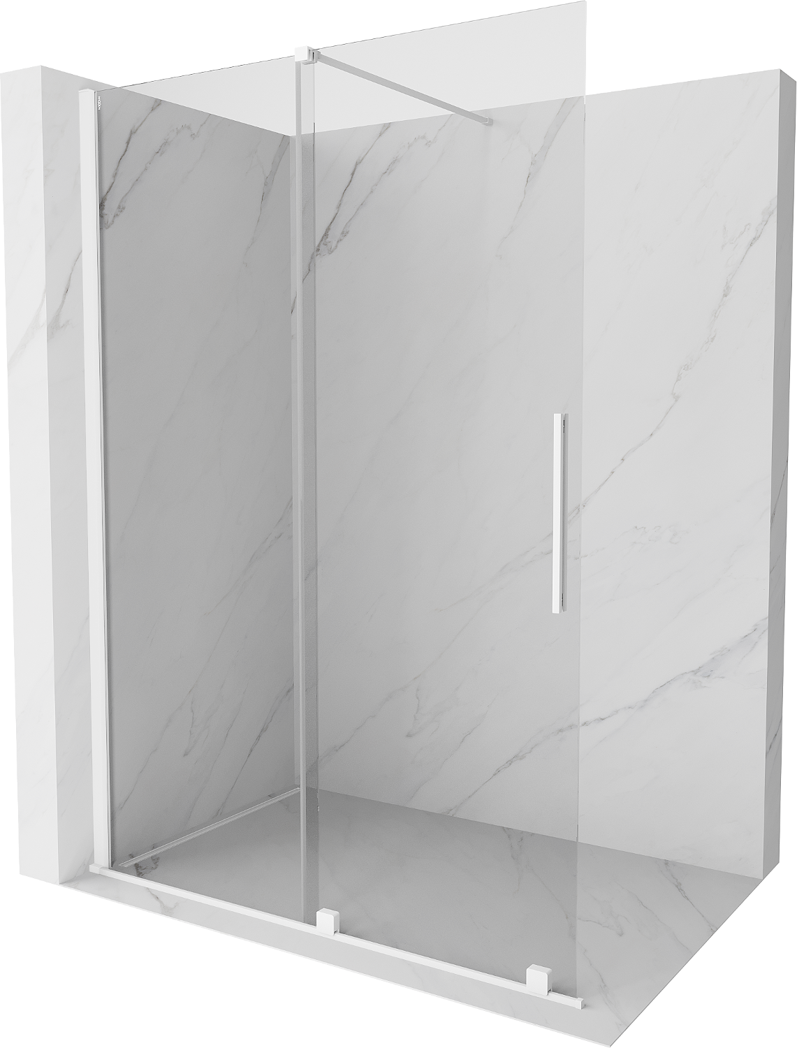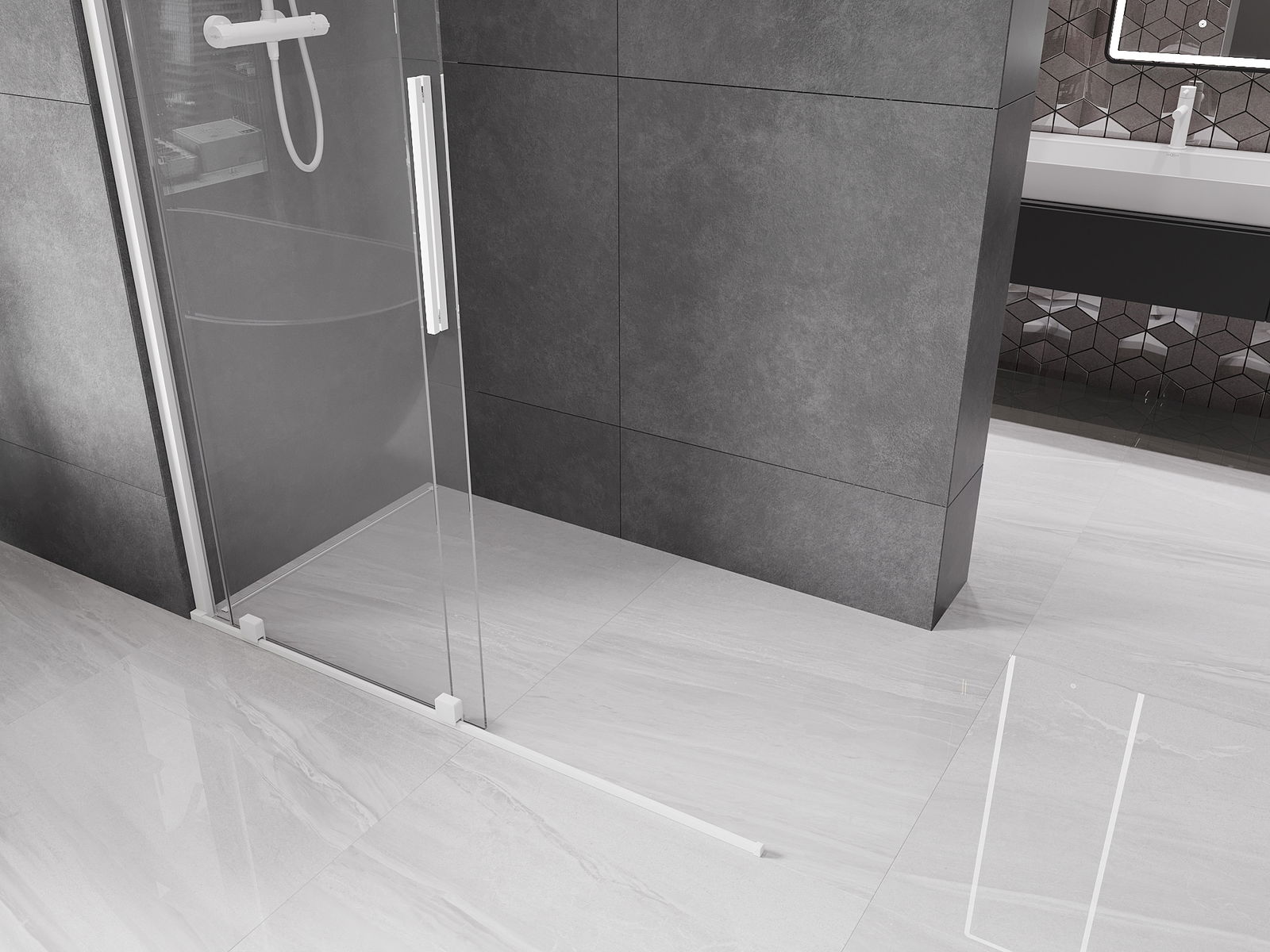 Mexen Velar zasúvacia sprchová stena Walk-in 140 x 200 cm, transparentná 8 mm, biela - 871-140-000-03-20