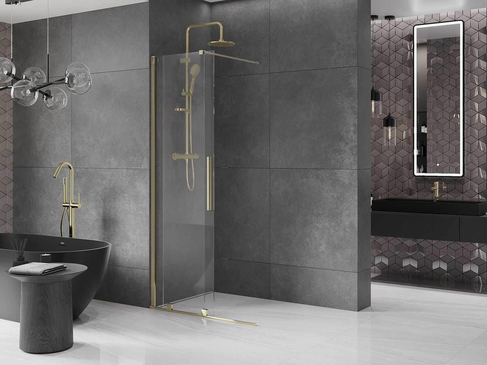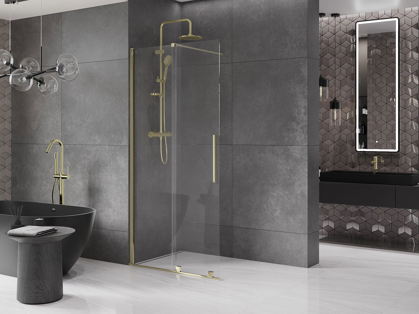 Mexen Velar posuvná sprchová stena Walk-in 120 x 200 cm, priehľadná 8 mm, zlatá - 871-120-000-03-50