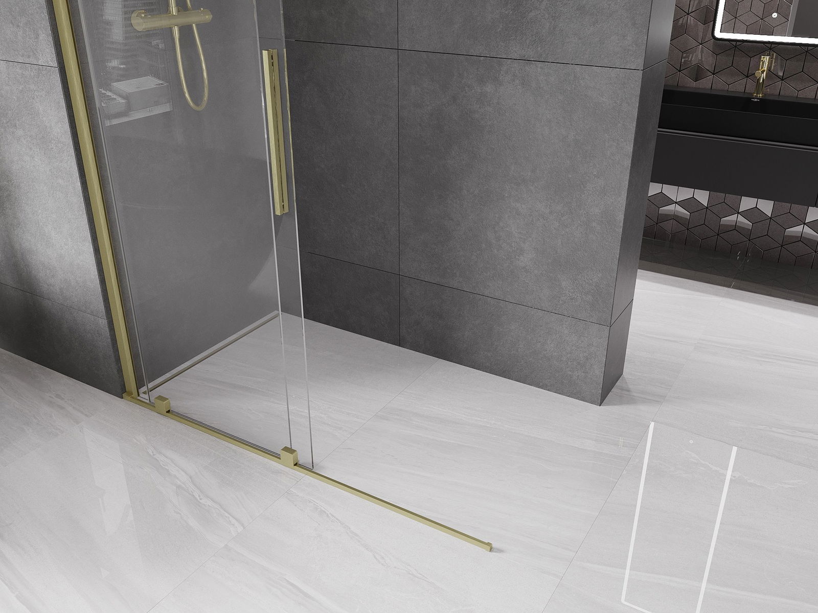 Mexen Velar posuvná sprchová stena Walk-in 130 x 200 cm, priehľadná 8 mm, zlatá kartáčovaná - 871-130-000-03-55