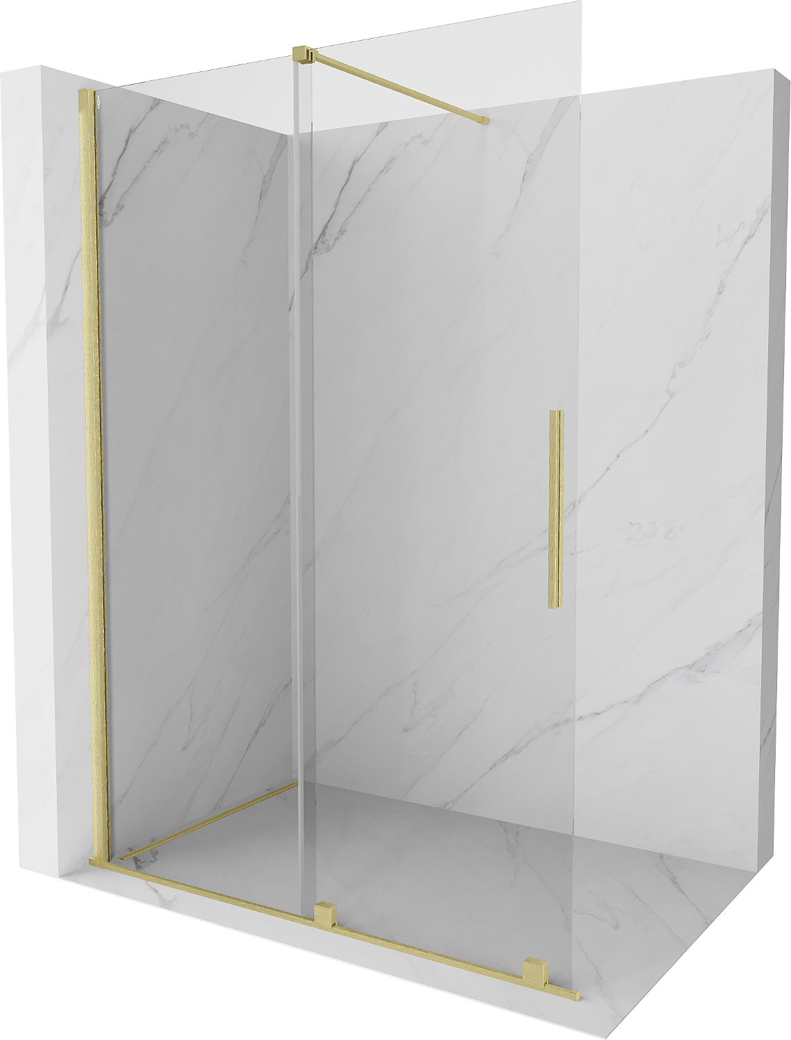 Mexen Velar posuvná sprchová stena Walk-in 140 x 200 cm, priehľadná 8 mm, zlatá kartáčovaná - 871-140-000-03-55