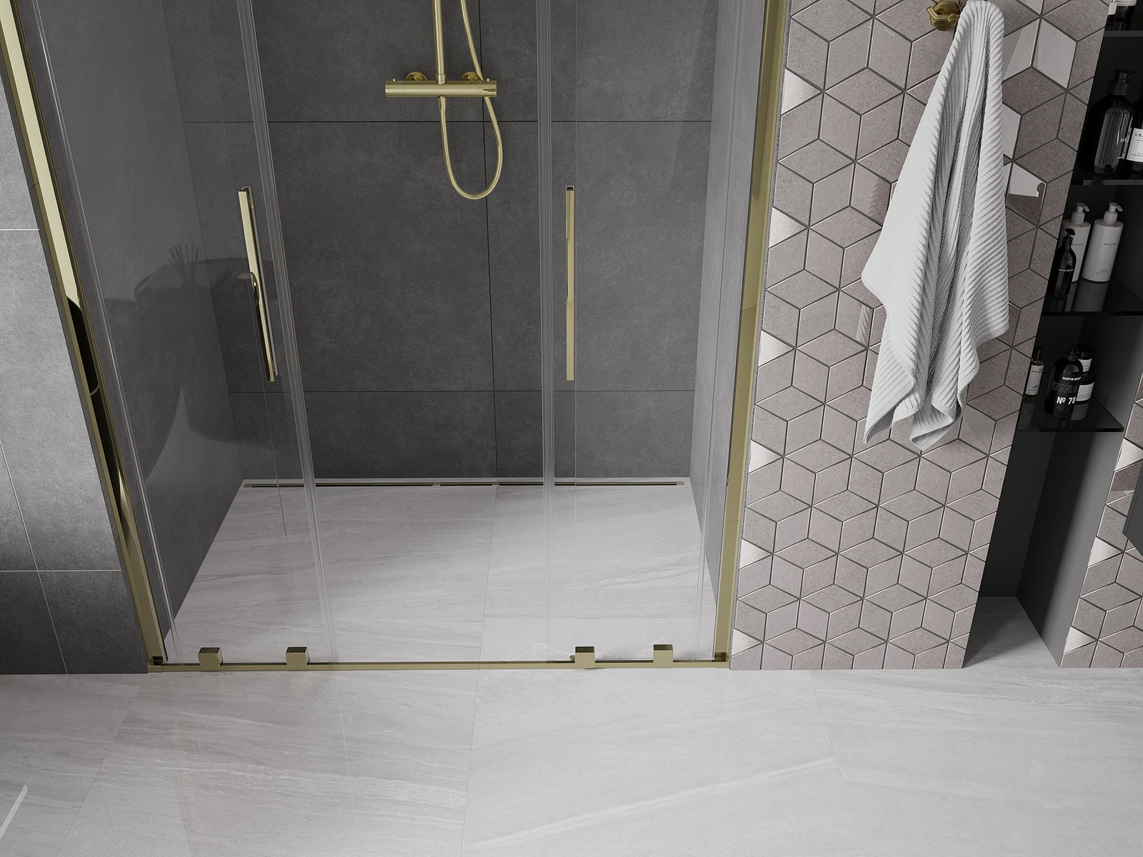 Mexen Velar Duo posuvné sprchové dvere 150 cm, transparentné, zlaté - 871-150-000-02-50
