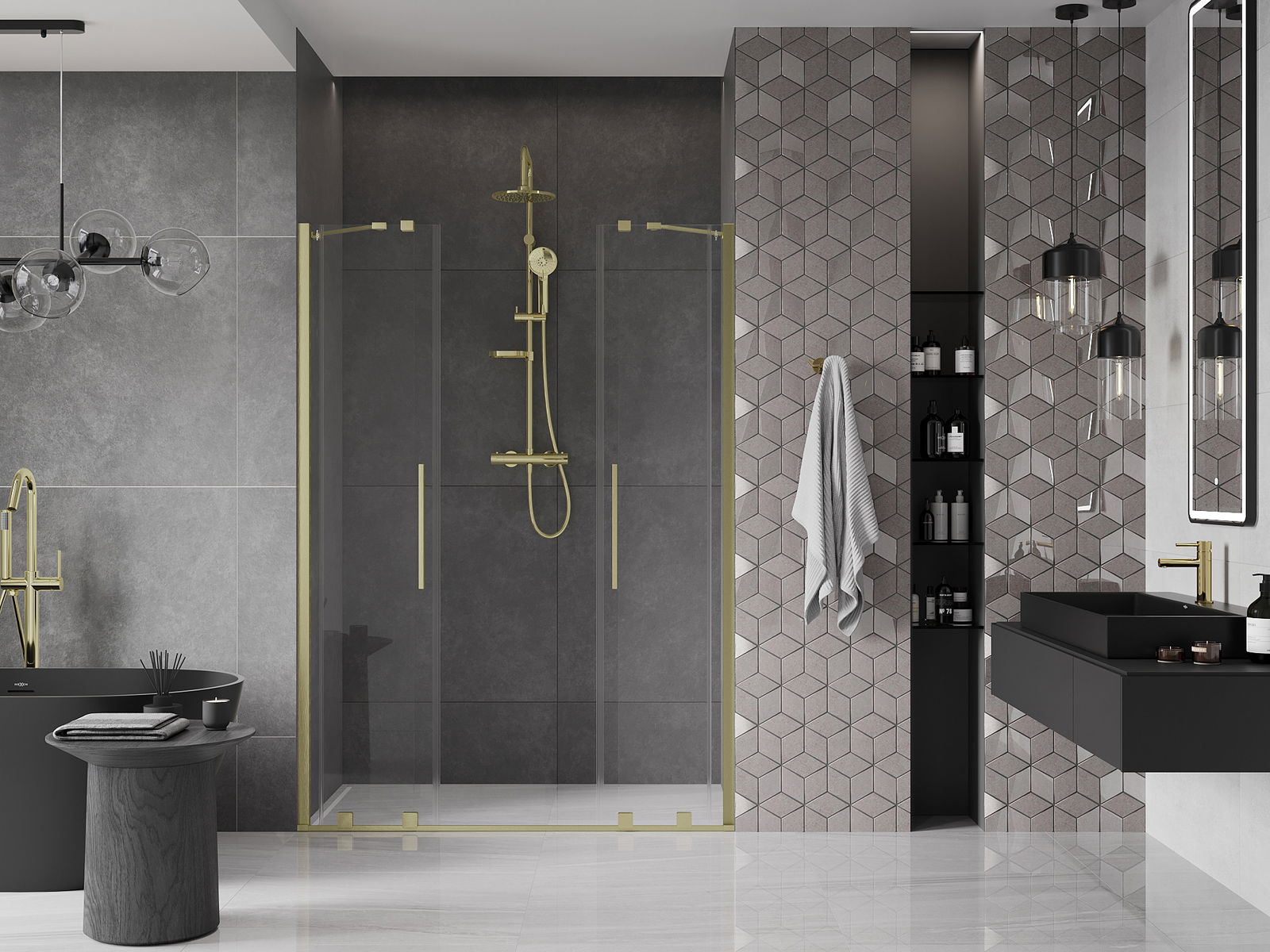 Praktická a pohodlná rukoväť je vyrobená z nehrdzavejúcej ocele. Módny tvar v kombinácii s povrchovou úpravou, ktorá ladí s farbou profilov, dodáva celku moderný a štýlový vzhľad, čím zvyšuje estetiku každej kúpeľne.