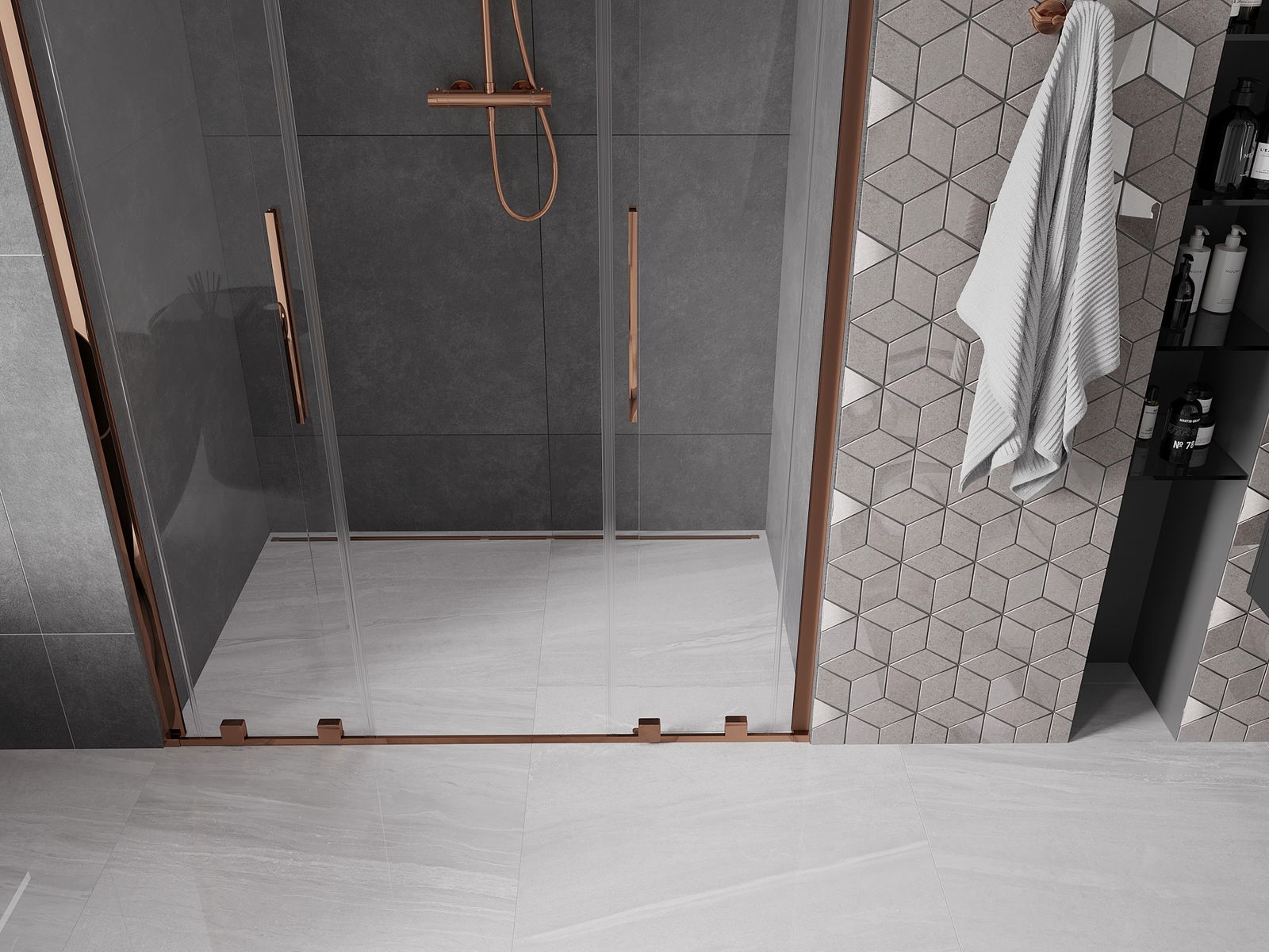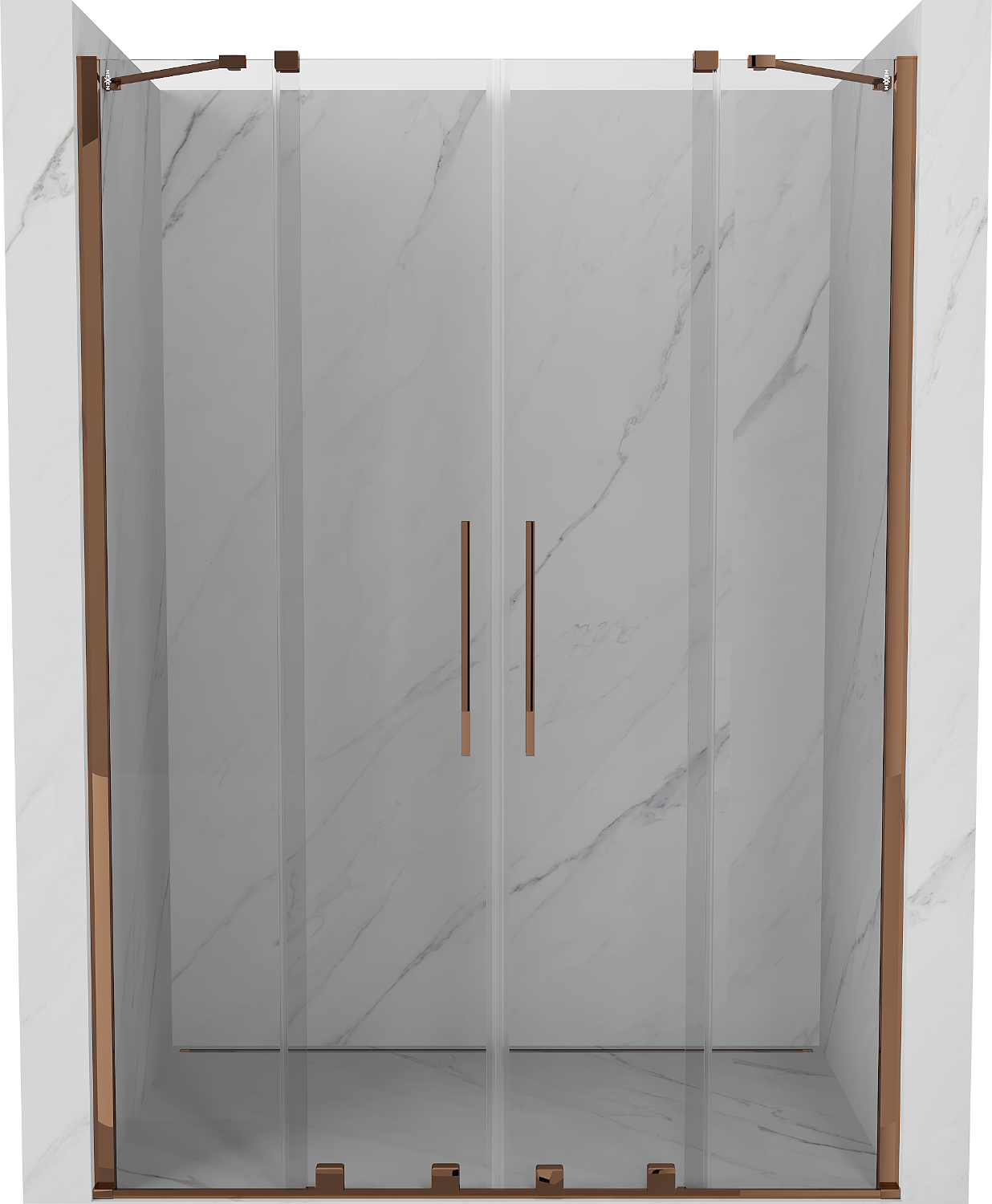 Mexen Velar Duo posuvné sprchové dvere 160 cm, transparentné, ružové zlato - 871-160-000-02-60