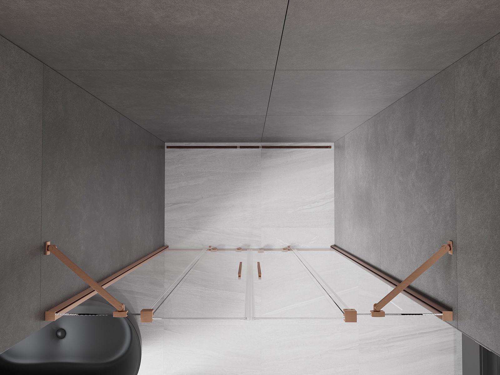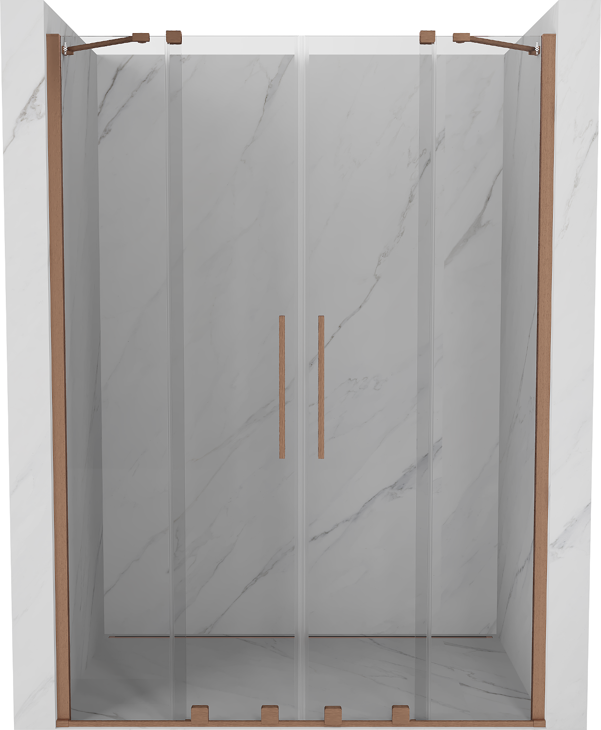 Mexen Velar Duo sprchové dvere posuvné 160 cm, transparentné, kartáčovaná meď - 871-160-000-02-65