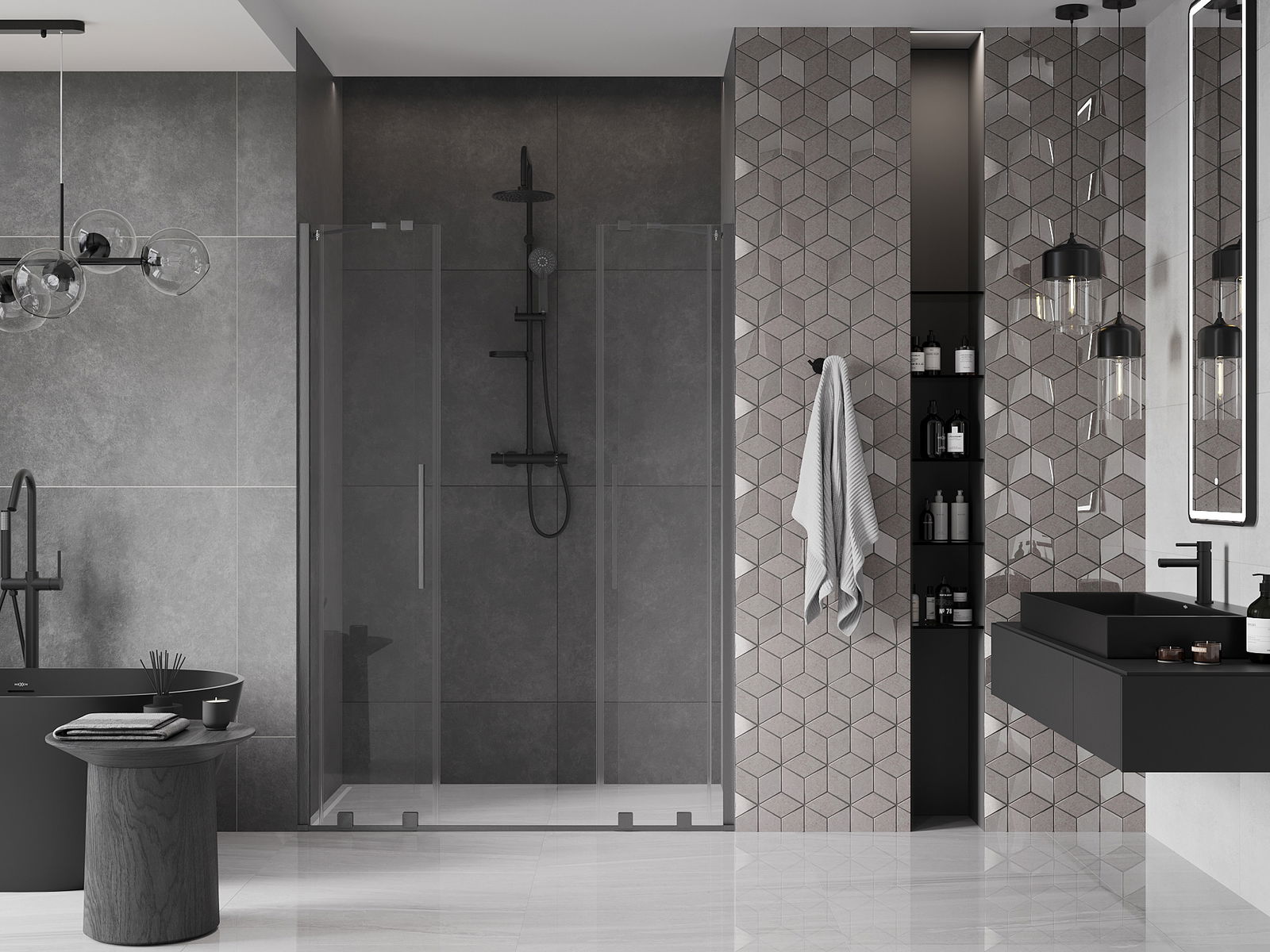 Praktická a pohodlná rukoväť je vyrobená z nehrdzavejúcej ocele. Módny tvar v kombinácii s povrchovou úpravou, ktorá ladí s farbou profilov, dodáva celku moderný a štýlový vzhľad, čím zvyšuje estetiku každej kúpeľne.