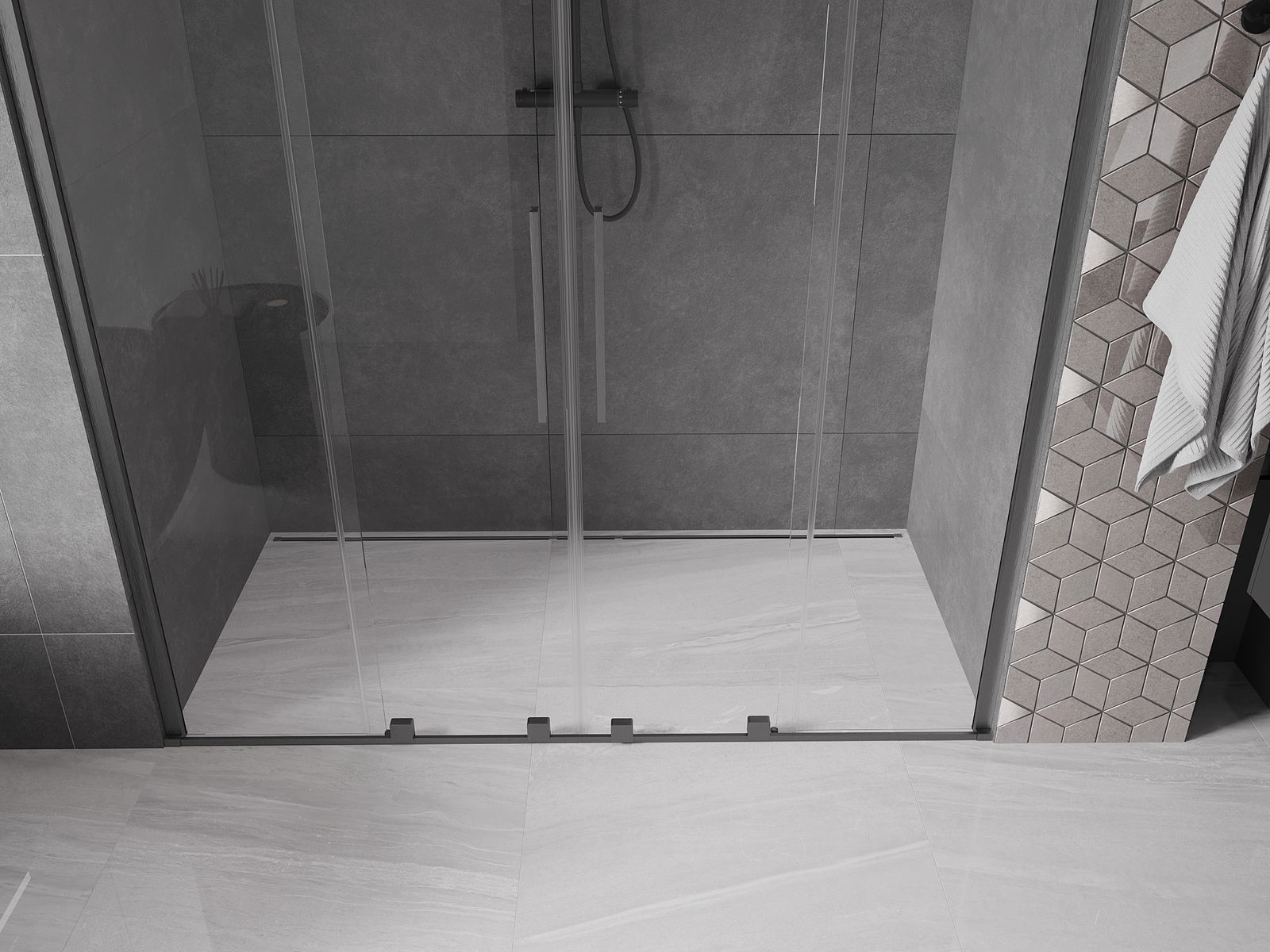 Mexen Velar Duo sprchové dvere posuvné 170 cm, transparentné, brúsené strieľavo šedé - 871-170-000-02-66