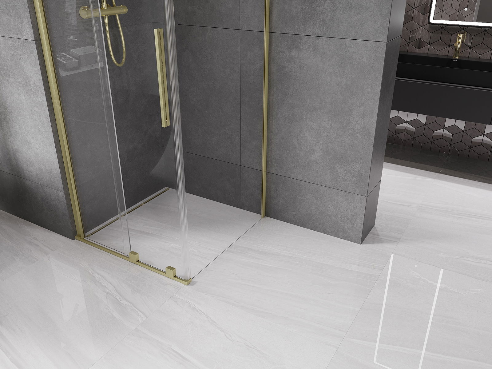 Mexen Velar sprchová kabína posuvná 120 x 120 cm, transparentná, zlatá kartáčovaná - 871-120-120-01-55