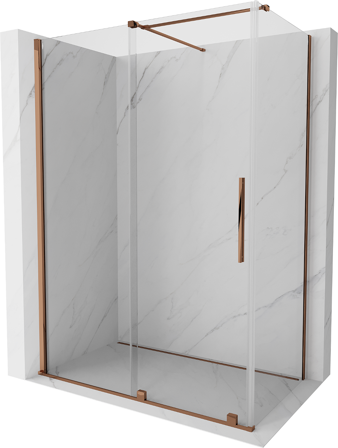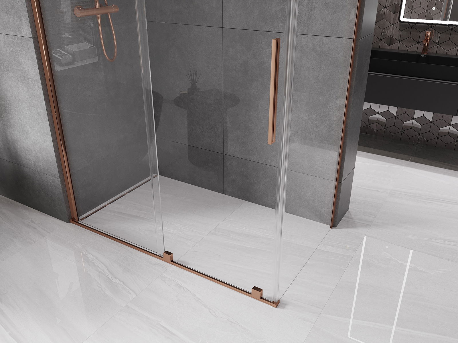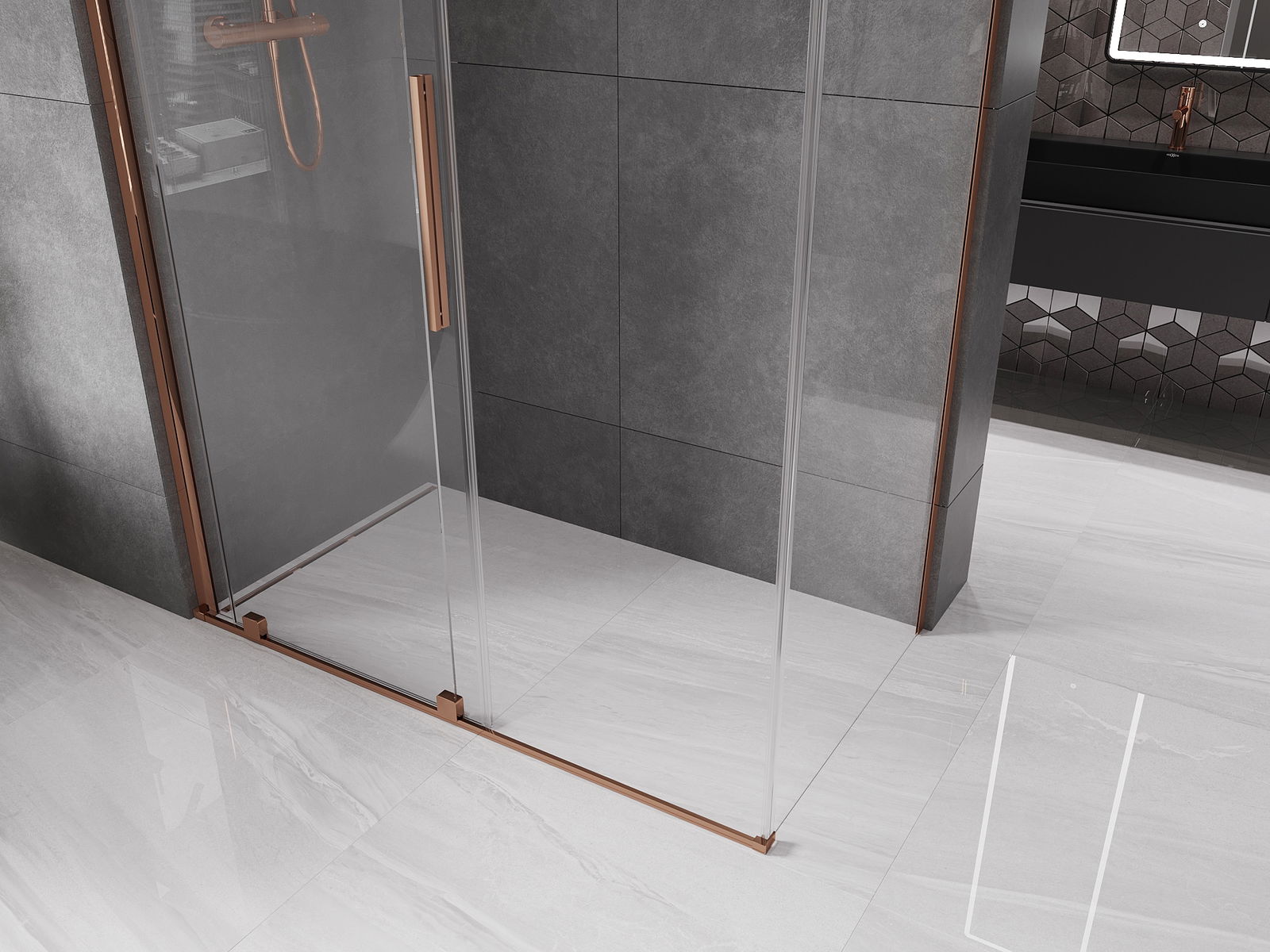 Mexen Velar Sprchový kút posuvný 160 x 75 cm, transparentný, ružové zlato - 871-160-075-01-60