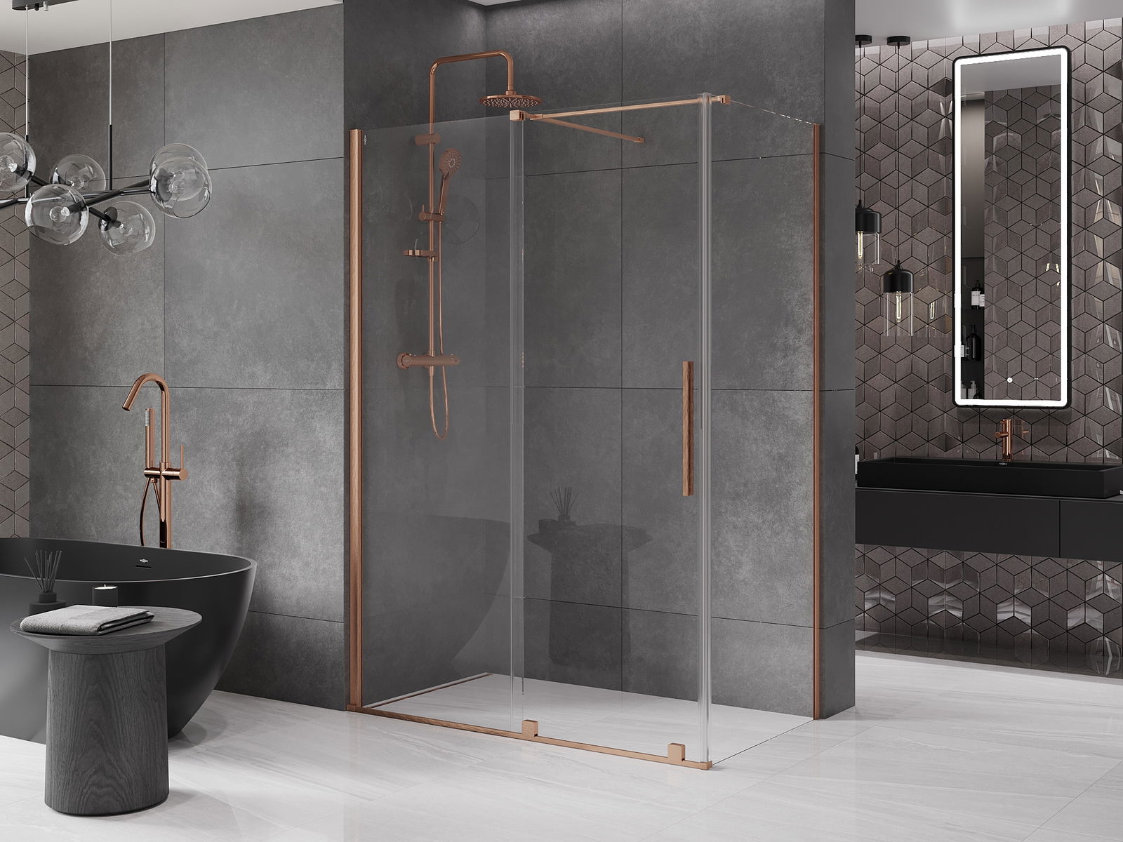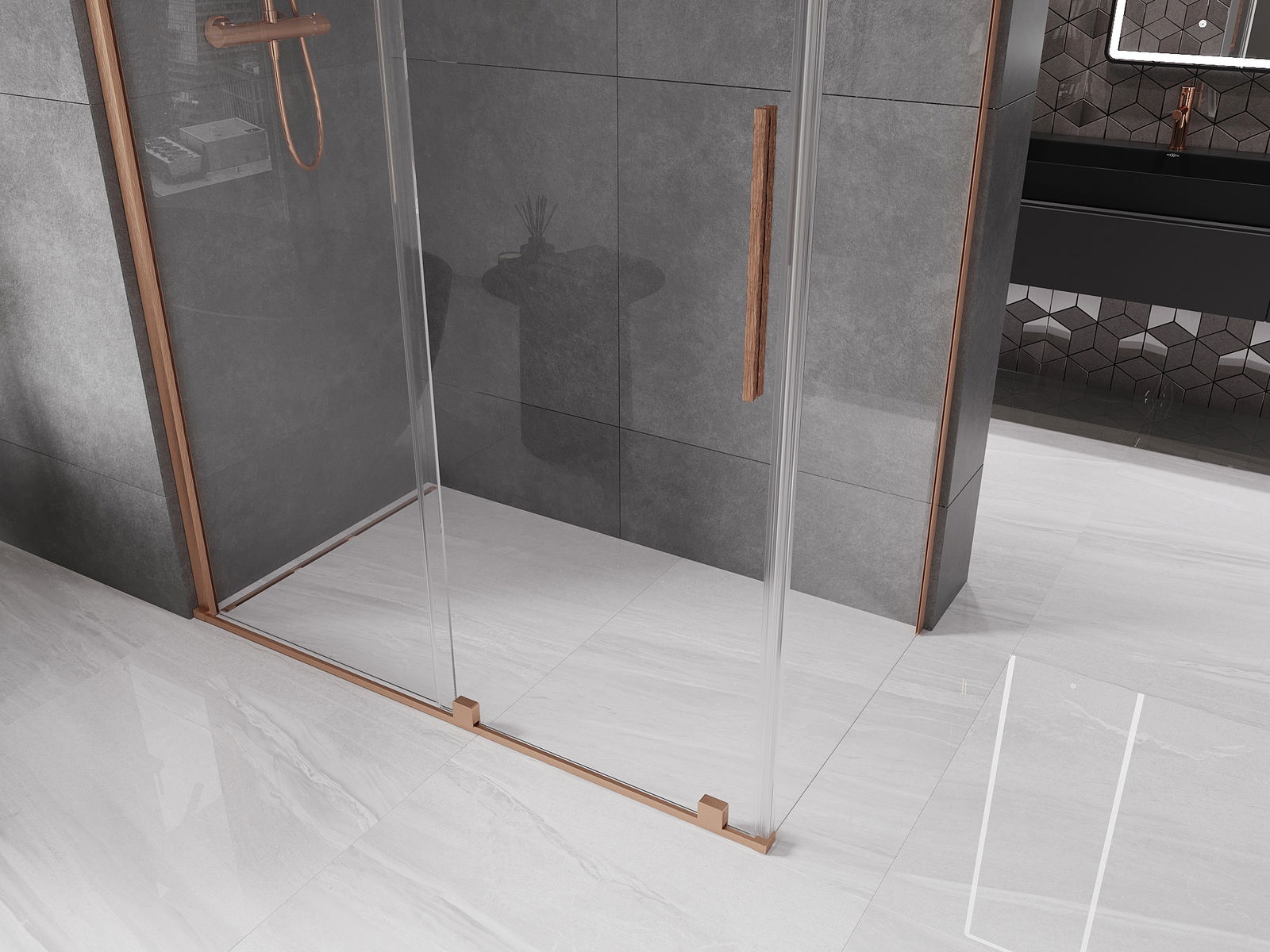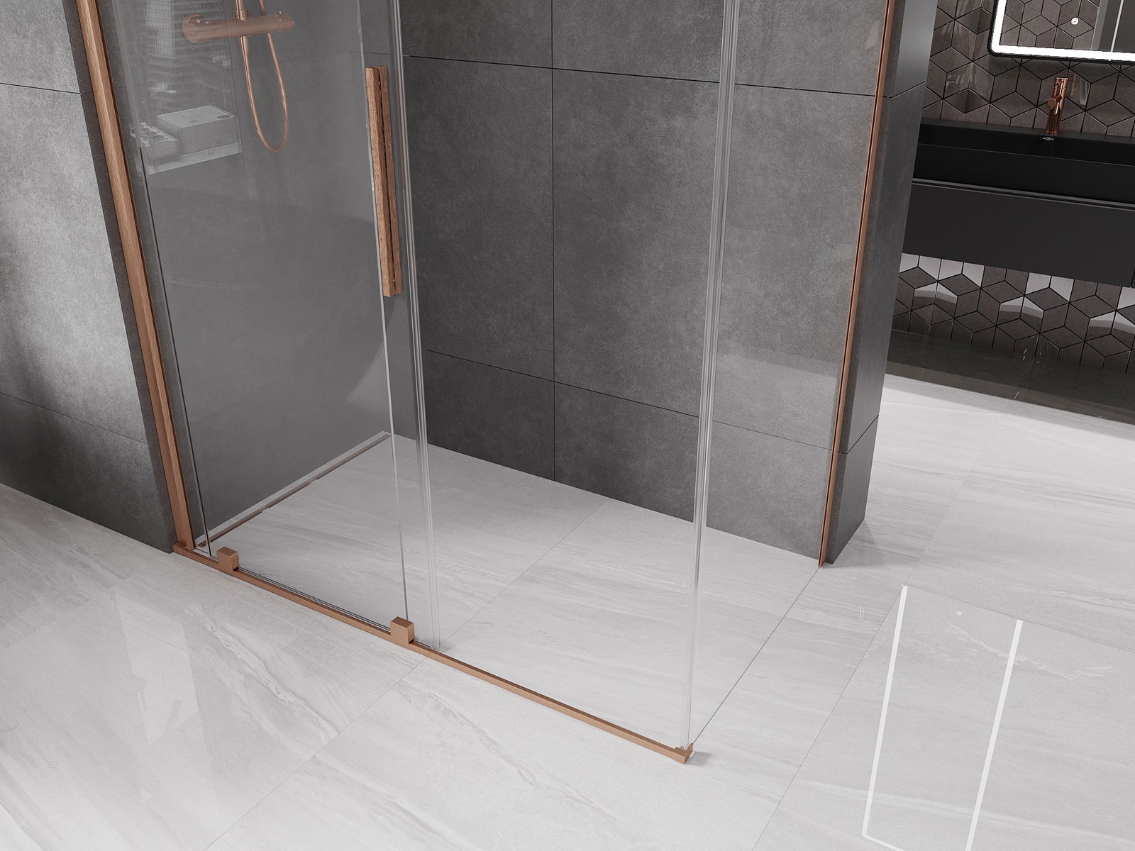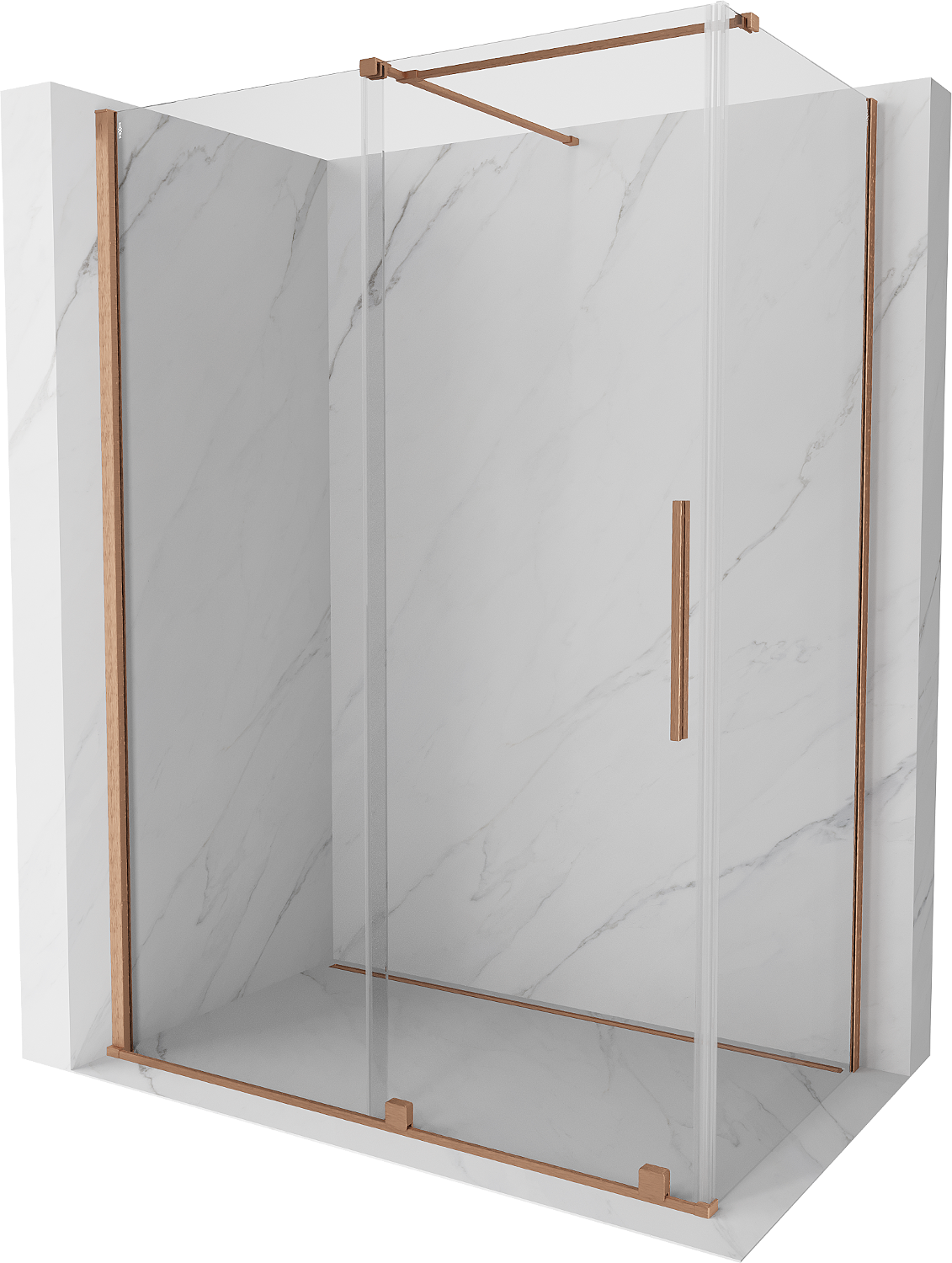 Mexen Velar posuvná sprchová kabína 160 x 70 cm, priehľadná, brúsená meď - 871-160-070-01-65