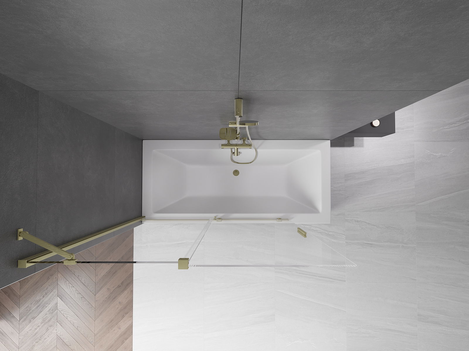 Mexen Velar vaňová zástena 2-krídlová posuvná 140 x 150 cm, priehľadná, zlatá brúsená - 896-140-000-01-55