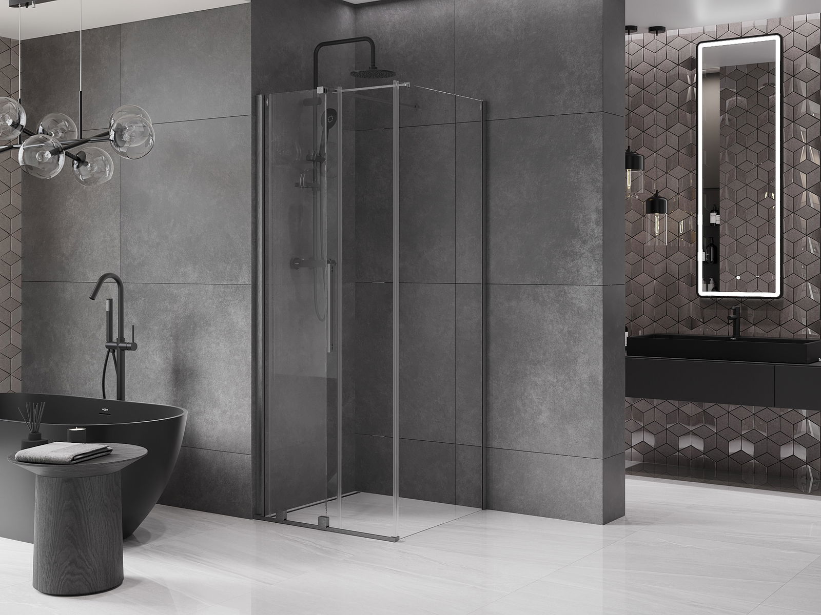 Mexen Velar sprchová kabína posuvná 100 x 100 cm, transparentná, brúsená zbraňovo sivá - 871-100-100-01-66