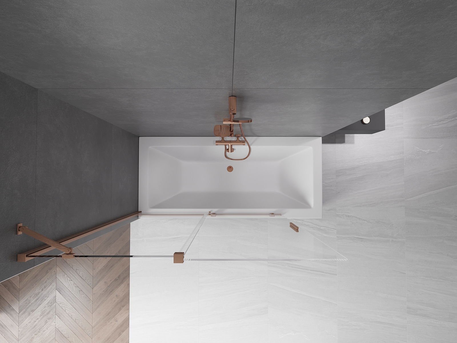 Mexen Velar dvojkrídlová vaňová zástena, posuvná 140 x 150 cm, transparentná, brúsená meď - 896-140-000-01-65