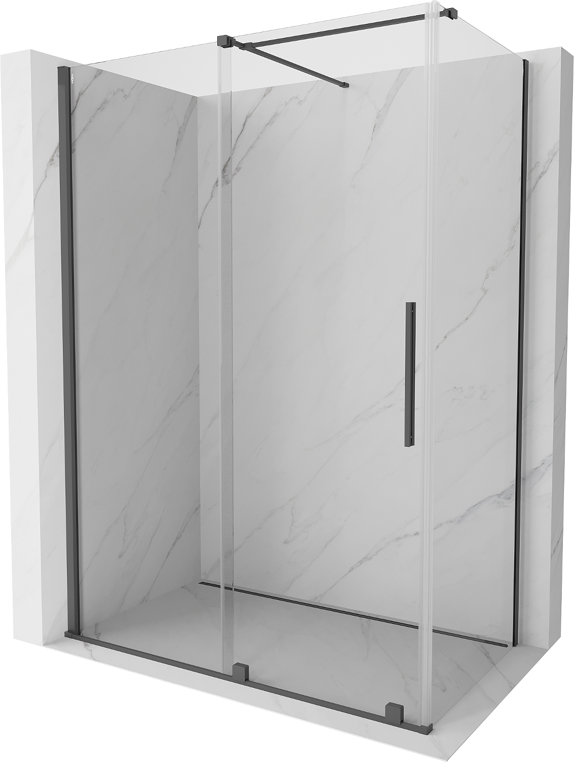 Mexen Velar sprchová kabína posuvná 160 x 90 cm, transparentná, kartáčovaná tmavosivá - 871-160-090-01-66