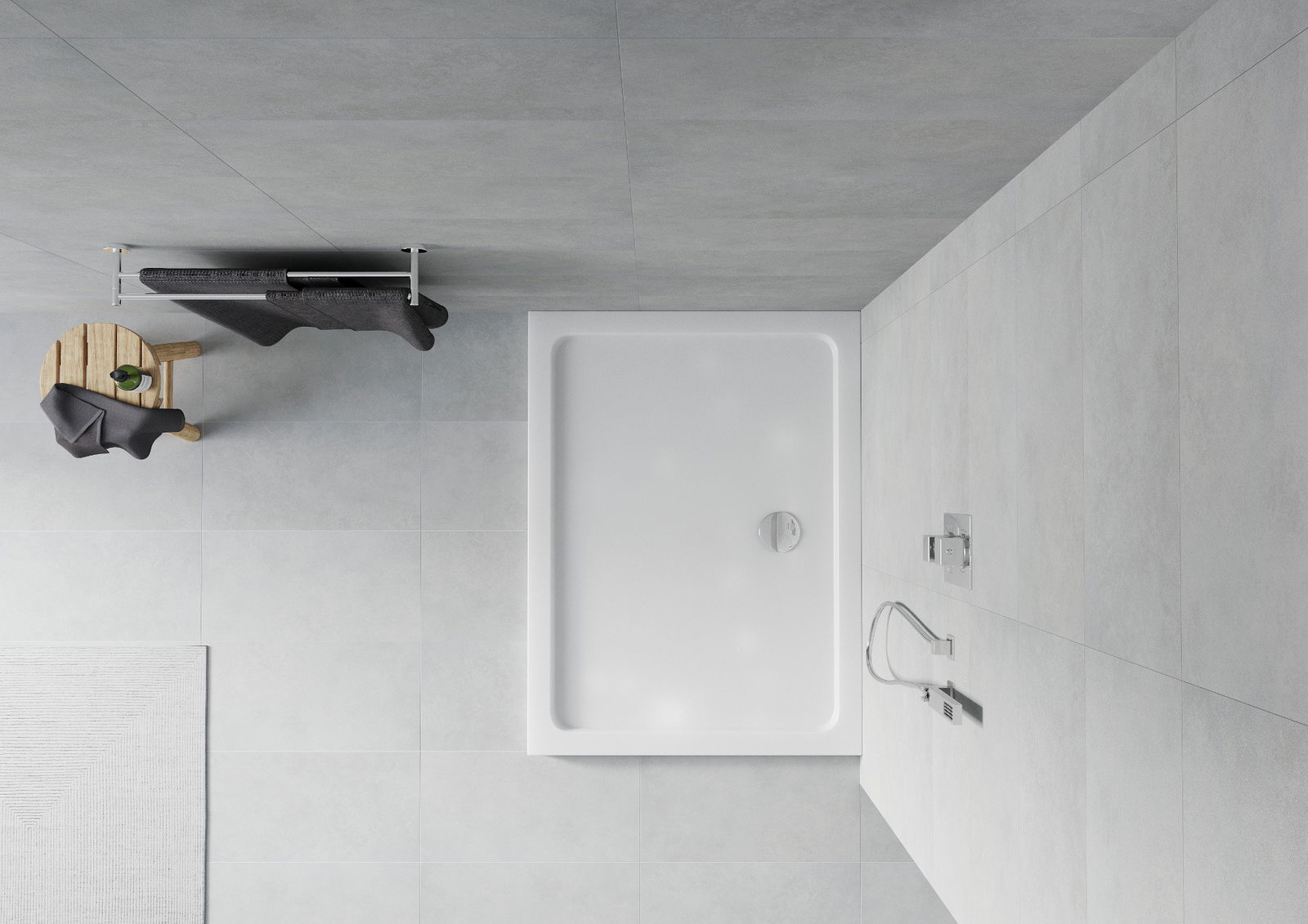 Sprchová vanička má nízky prah, čo uľahčuje vstupovanie a vystupovanie zo sprchy. Dodáva miestnosti výnimočný a nadčasový vzhľad, čím robí kúpeľňu komfortným a estetickým miestom na každodenný relax.