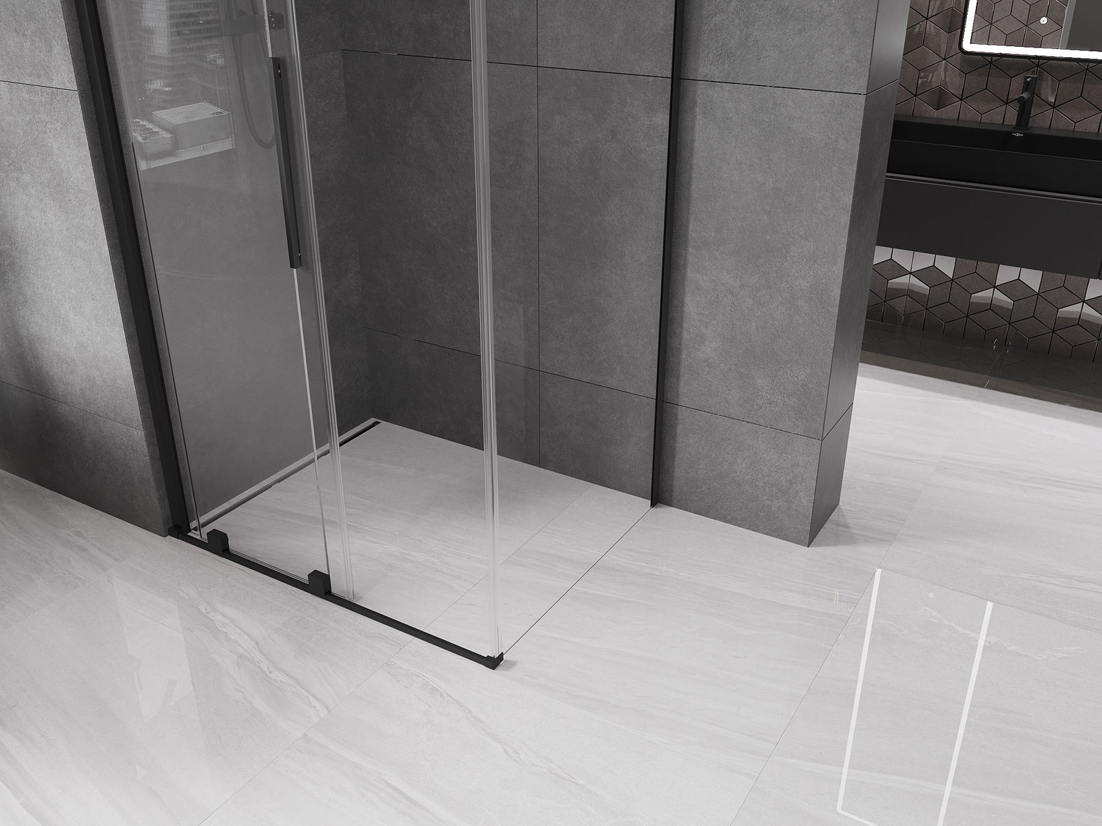 Mexen Velar sprchová kabína posuvná 130 x 85 cm, transparentná, čierna - 871-130-085-01-70