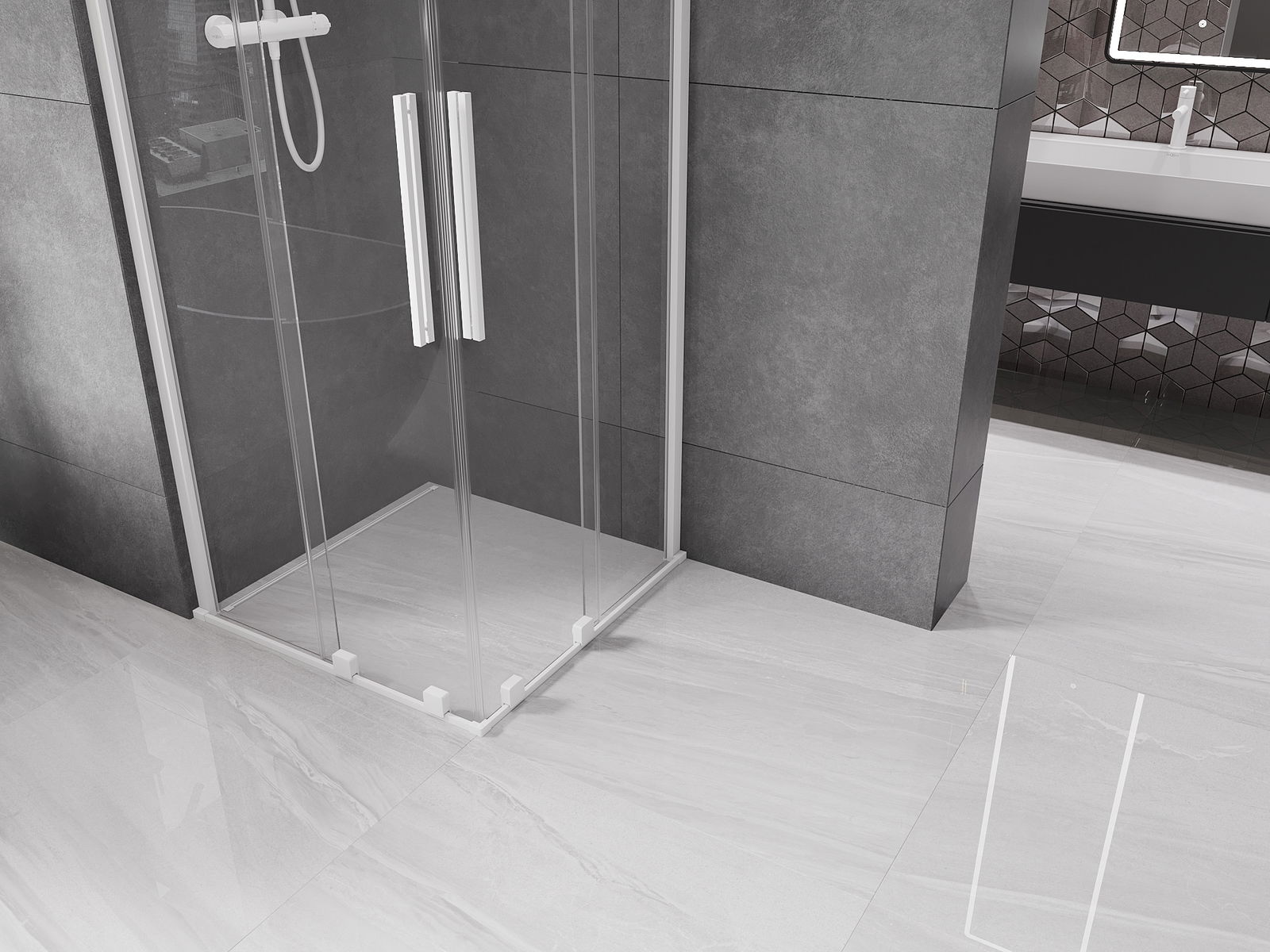 V závislosti od vašich potrieb je možné produkt namontovať na sprchovací podnos aj priamo na podlahe. Univerzálna montážna metóda vám umožňuje prispôsobiť produkt rôznym typom kúpeľní a nakonfigurovať priestor.