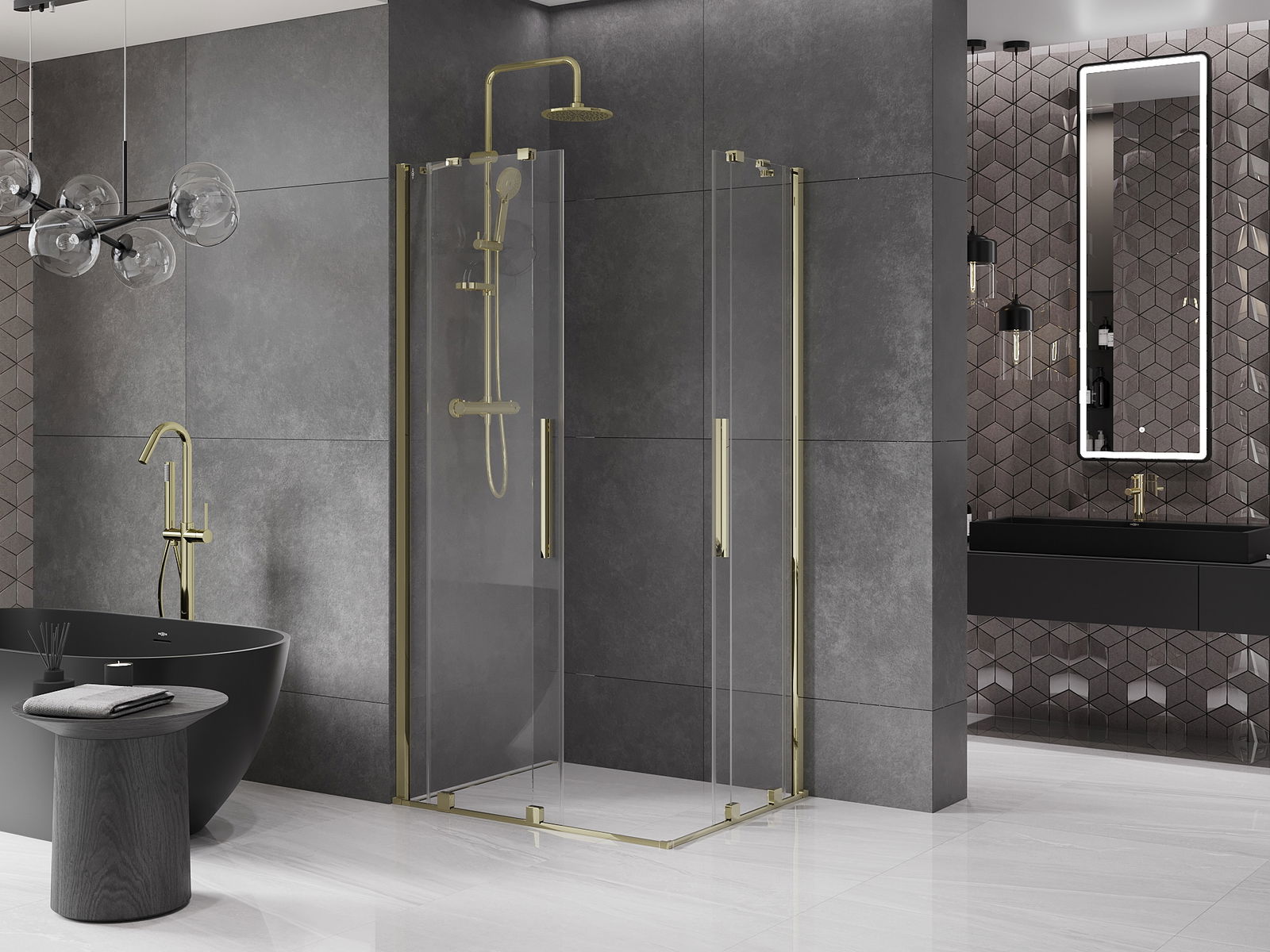 Mexen Velar Duo sprchová kabína zasúvacia 90 x 80 cm, transparentná, zlatá - 871-090-080-02-50