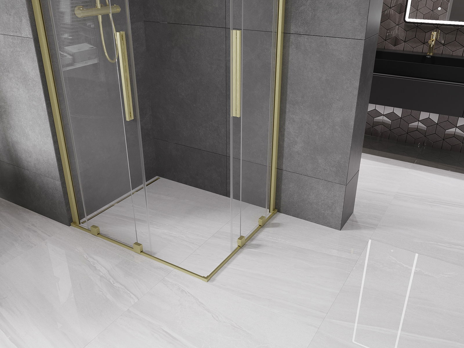 Mexen Velar Duo posuvná sprchová kabína 90 x 80 cm, priehľadná, brúsená zlatá - 871-090-080-02-55
