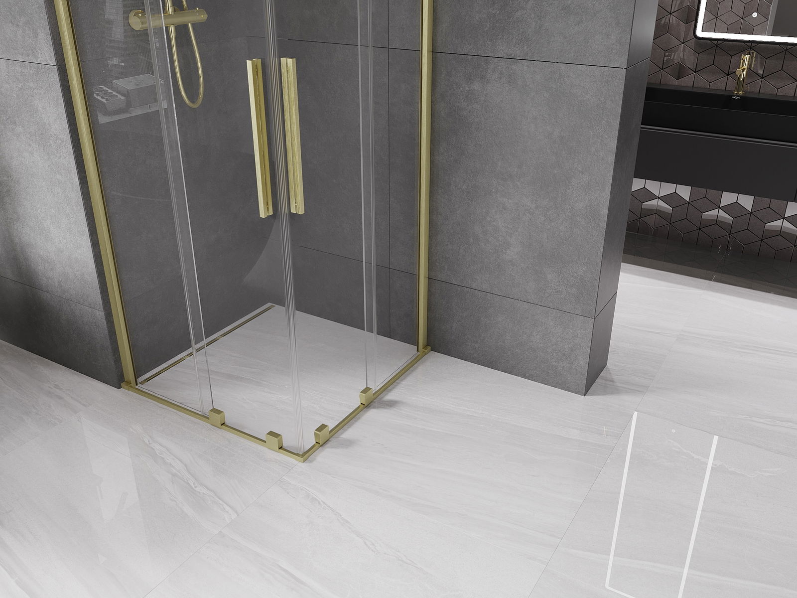 Mexen Velar Duo posuvná sprchová kabína 90 x 90 cm, transparentná, zlatá kartáčovaná - 871-090-090-02-55